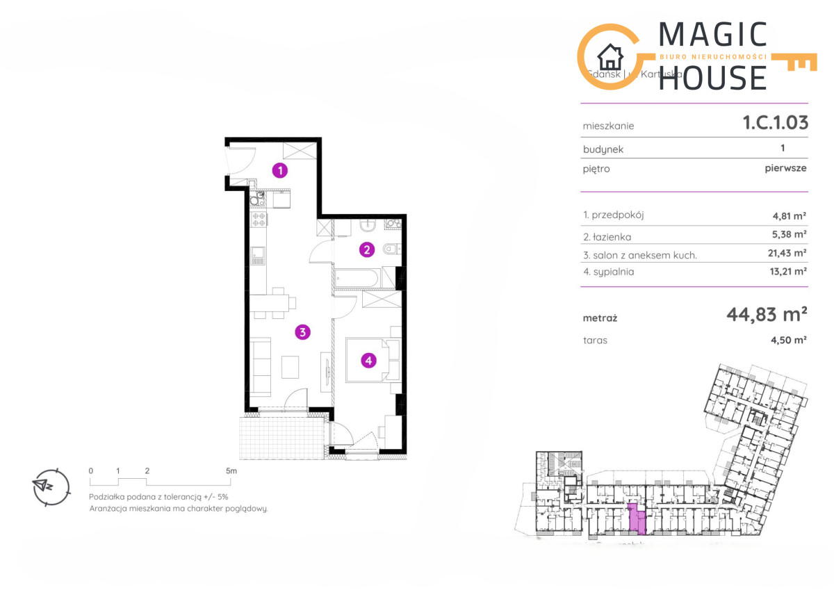 Na sprzedaż jasne i funkcjonalne mieszkanie 2-pokojowe o powierzchni 44.83 m², położone na 1 piętrze nowoczesnego budynku na osiedlu w dzielnicy Siedlce.