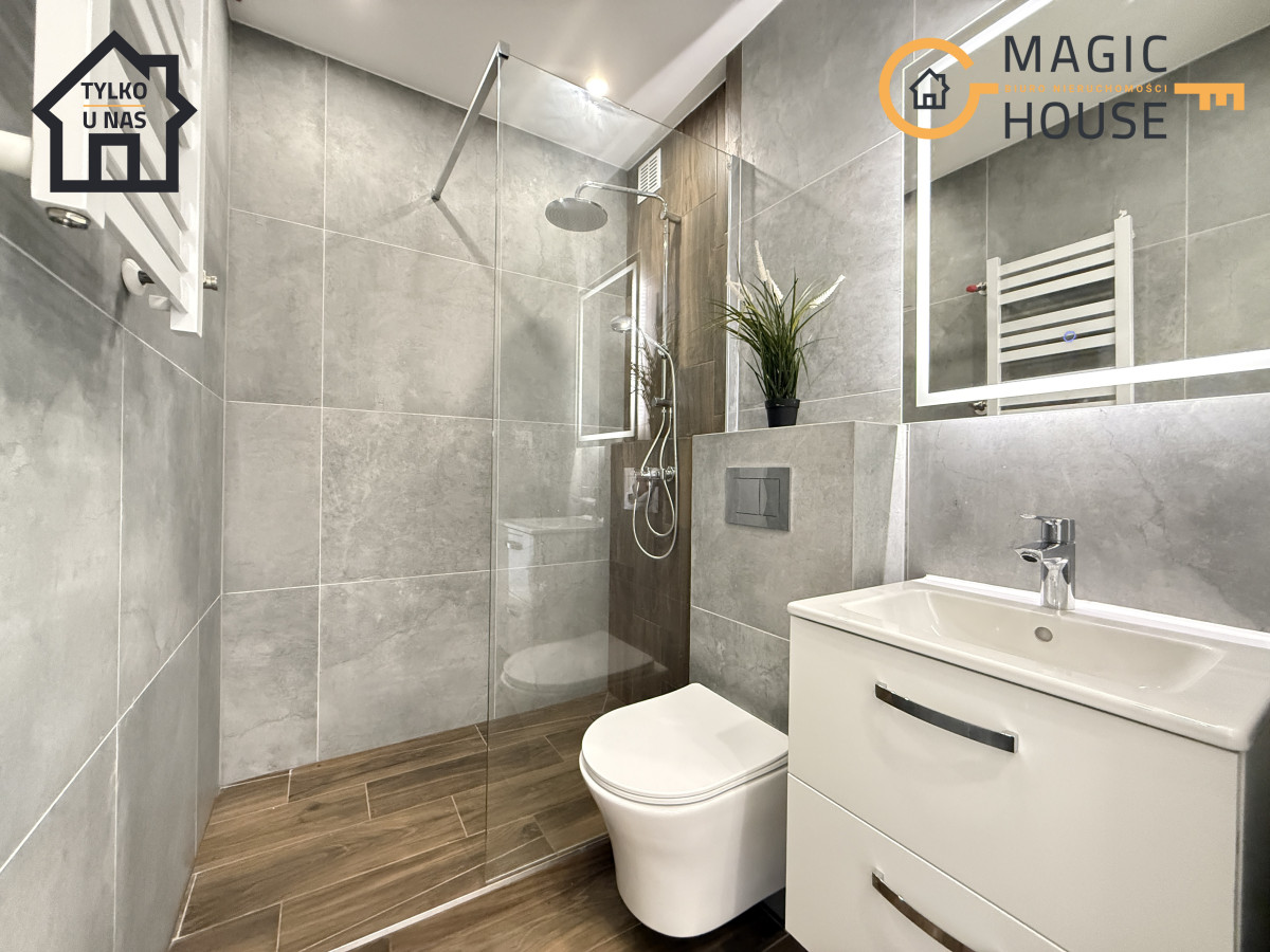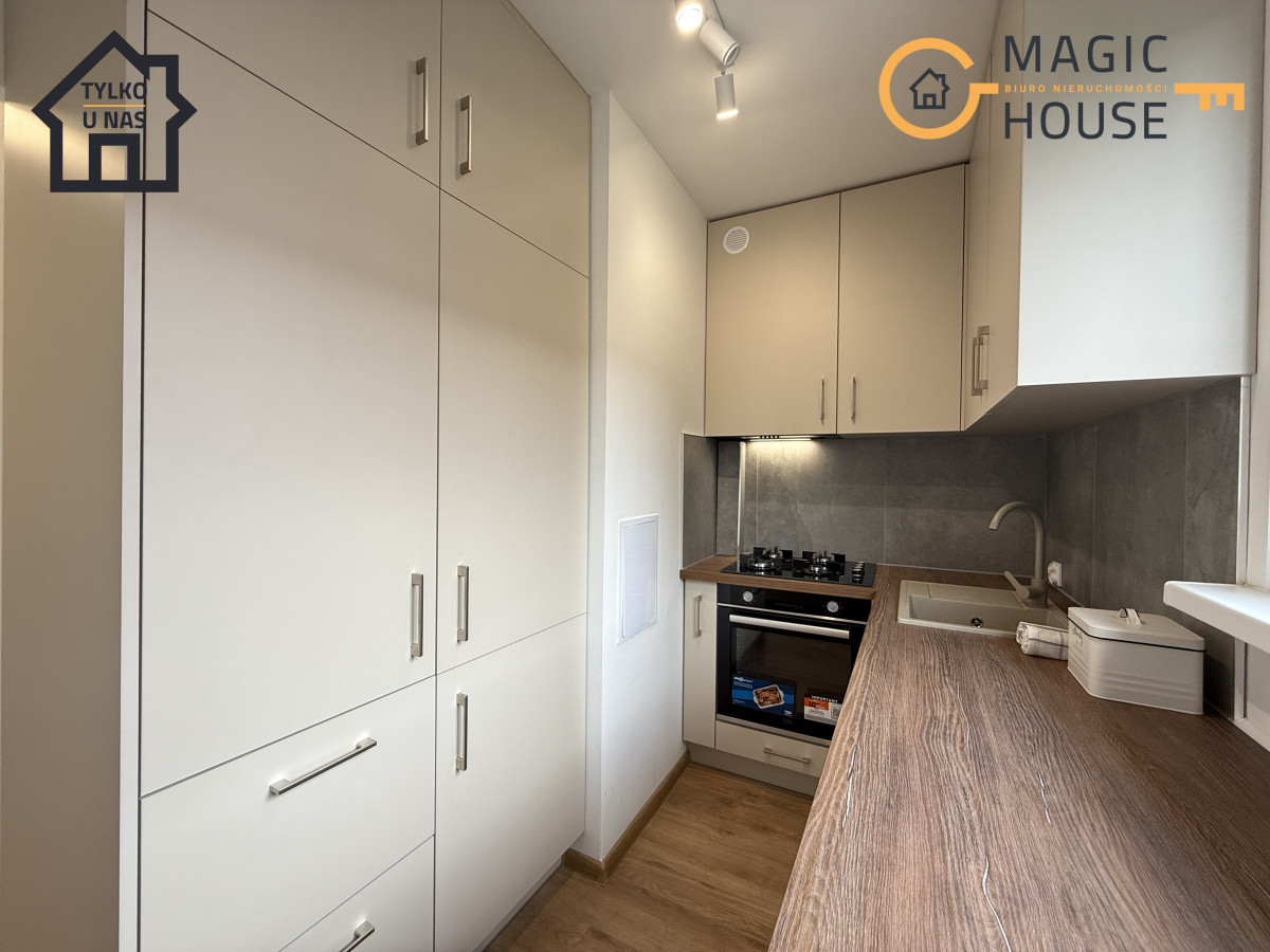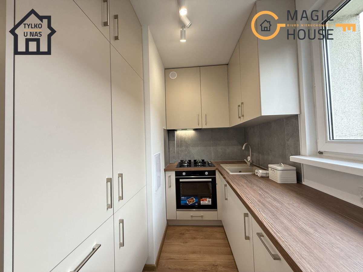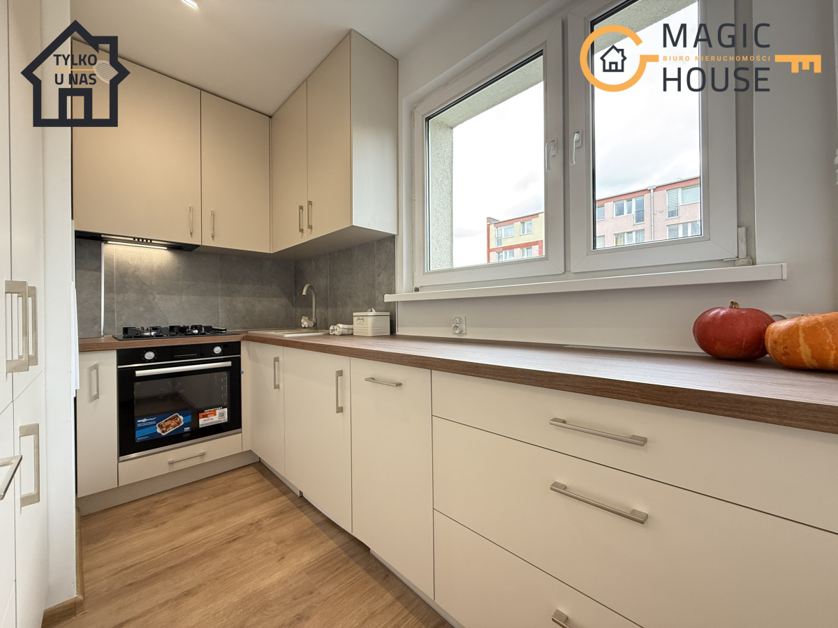 Mieszkanie jest po generalnym remoncie. W całym mieszkaniu została wymieniona instalacja elektryczna ( miedź ). Wymienione drzwi oraz położono nowe panele podłogowe – jednolite w całym mieszkaniu, co wpływa na spójność i estetyczność całego mieszkania. Okna PCV. Wszystkie ściany zostały odmalowane oraz doprowadzono nowe gniazdka elektryczne poprawiając komfort przyszłych mieszkańców. Warto nadmienić, że mieszkanie zostało kompleksowo wykończone i wyposażone . Zabudowa kuchenna została wykonana na wymiar – wykorzystując w jak najbardziej praktyczny sposób dostępną przestrzeń. Wyposażona jest w AGD tj. – nowa płyta gazowa, piekarnik, okap, zmywarka, lodówko-zamrażalka oraz pralka. – Wszystkie sprzęty są nowe i objęte gwarancją.