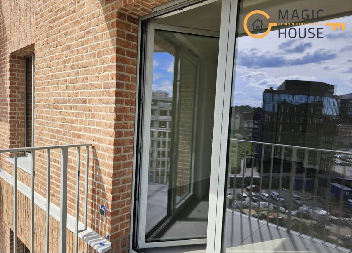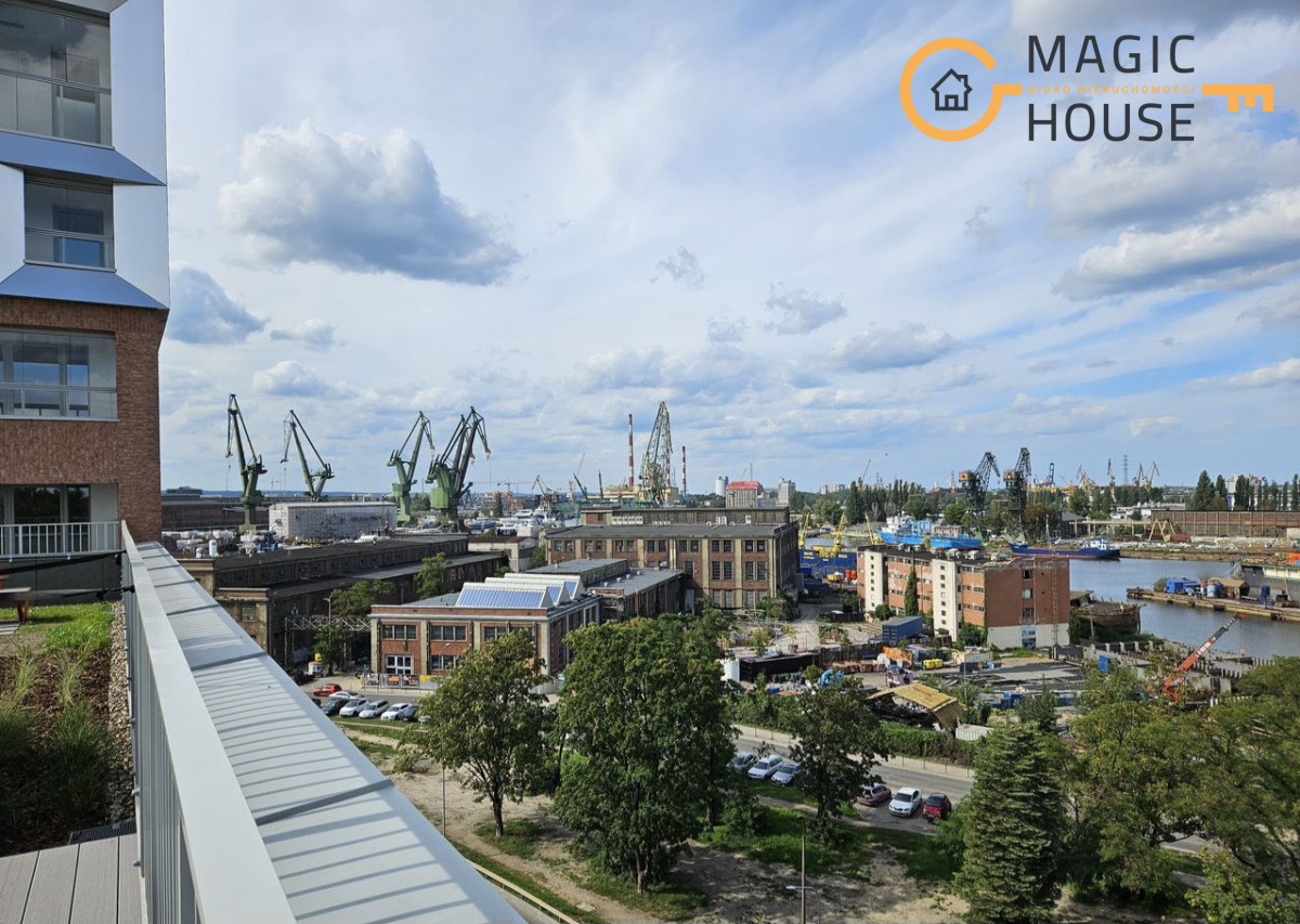 Apartament ma powierzchnię 41 m2, formalnie jest kawalerką, ale w praktyce ma wydzieloną ścianką osobną sypialnię – zgodnie z projektem dewelopera, stąd jest uprawnione traktowanie go jako de facto 2 pokojowego. Mieszkanie posiada ładny balkon z przepięknym widokiem na ECS (Europejskie Centrum Solidarności). Ekspozycja apartamentu jest w zasadzie południowa, stąd bardzo dobre doświetlenie. Mieszkanie to sprawdzi się zarówno jako mieszkanie dla singla lub pary, ale także idealnie jako tzw. drugi dom nad morzem lub po prostu inwestycyjnie – w budynku działa operator dla zainteresowanych tego typu usługą.