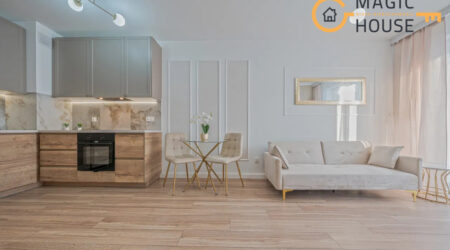 Mieszkanie zostało wykończone pod klucz i jest gotowe do zamieszkania lub wynajmu bez dodatkowych nakładów finansowych.