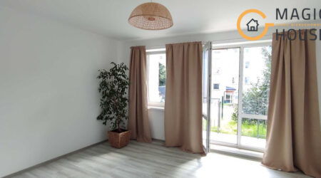 Lokal składa się z przedsionka, przestronnego pokoju dziennego z możliwością wykonania aneksu kuchennego (doprowadzone przyłącza), drugiego pokoju z opcją aranżacji jako sypialnia, kuchnia lub drugi aneks kuchenny, oraz łazienki z pełnym wyposażeniem. Całość po generalnym remoncie – nowe podłogi, drzwi, łazienka, armatura i ogrzewanie podłogowe sterowane indywidualnie.