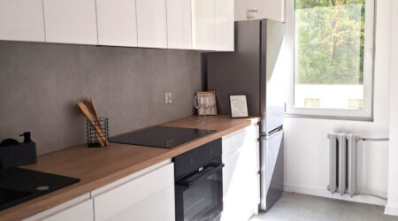 – nowa zabudowa kuchni wraz ze sprzętem AGD – piekarnik, zmywarka, płyta elektryczna, okap, lodówka (na gwarancji),