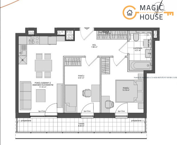 • taras – 8,88 m²