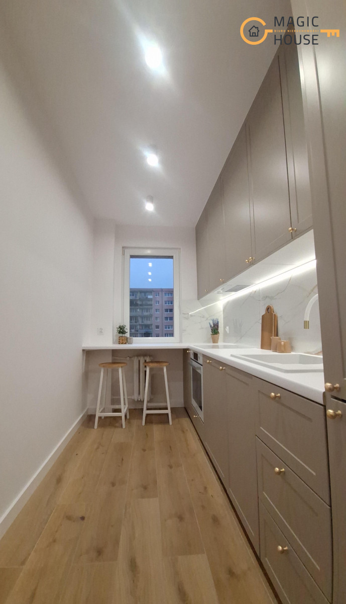 Nieruchomość jest po generalnym remoncie – wymienione zostały wszystkie instalacje elektryczne i hydrauliczne, ściany wyrównane gładzią, podłogi przygotowane w wylewkach, okna PCV.