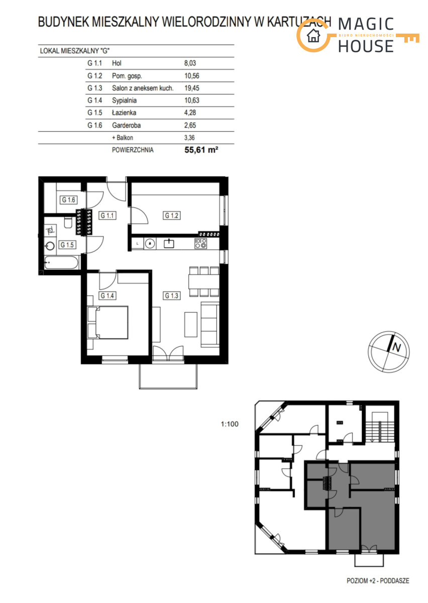 • Powierzchnia użytkowa 55.61 m2
