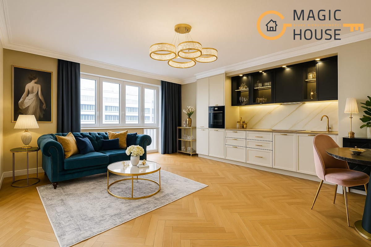 Komfortowy, funkcjonalny i słoneczny (ekspozycja południowa i północna), apartament składający się z trzech pokoi, salonu z aneksem kuchennym wyposażonym w AGD firmy Electrolux (płyta grzewcza, piekarnik, zmywarka lodówka) i wyjściem na balkon.