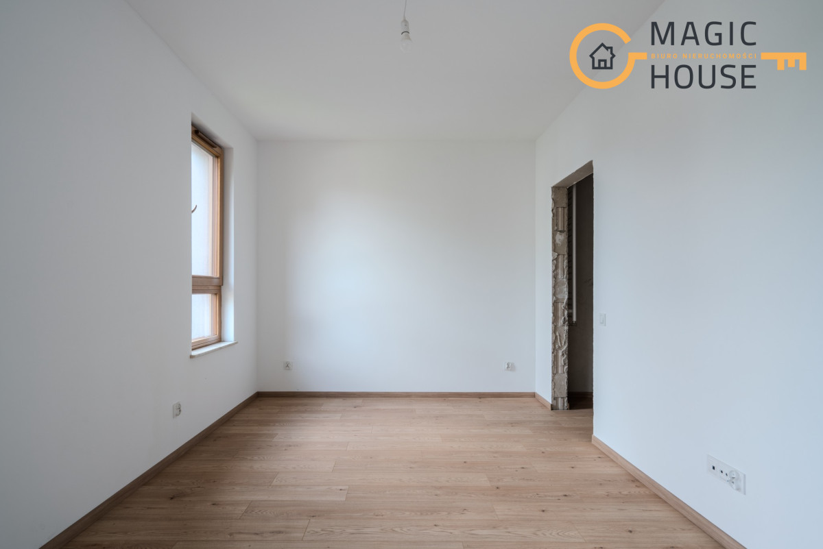 Pierwsze piętro: Łazienka, dwa przestronne pokoje, z możliwością przedzielenia jednego z nich i tym samym wyodrębnienia dodatkowego pokoju. Kolejnym atutem jest dodatkowe pomieszczenie na garderobę (lub jeszcze jedną łazienkę), co zwiększa funkcjonalność tego piętra.