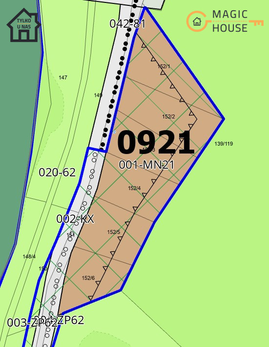 Grunt objęty jest Miejscowym Planem Zagospodarowania Przestrzennego o numerze MN21- tereny zabudowy mieszkaniowej ekstensywnej, który dopuszcza między innymi budowę domów wolnostojących jedno- lub dwu mieszkaniowych na jednej działce.