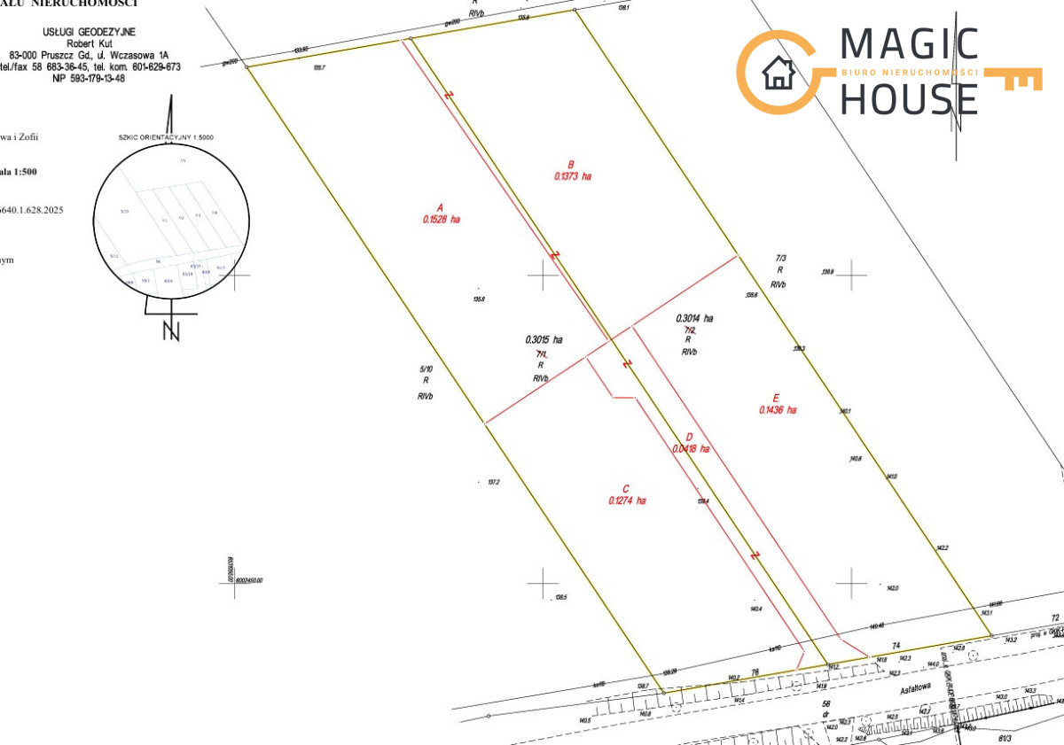 Działki 7/1 oraz 7/2 z projektem podziału na 4 działki