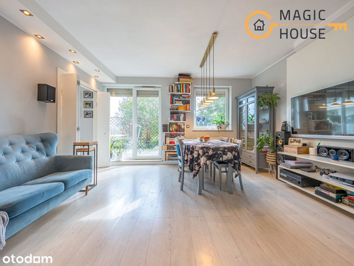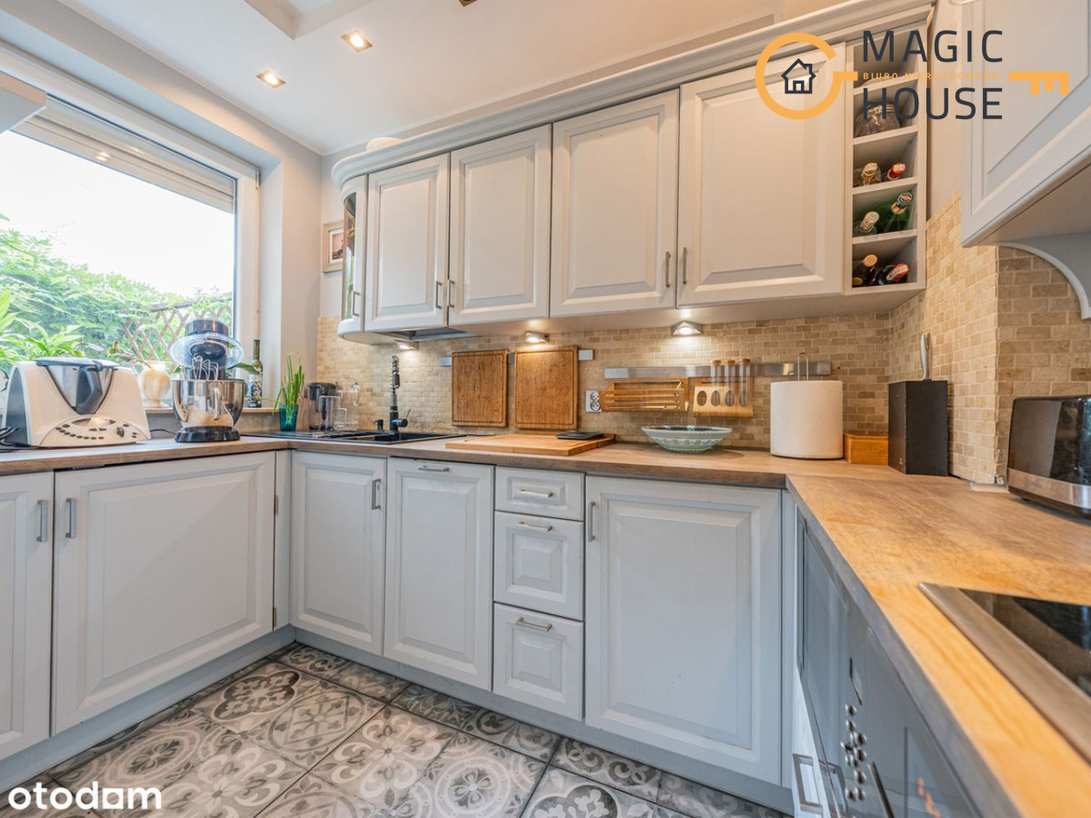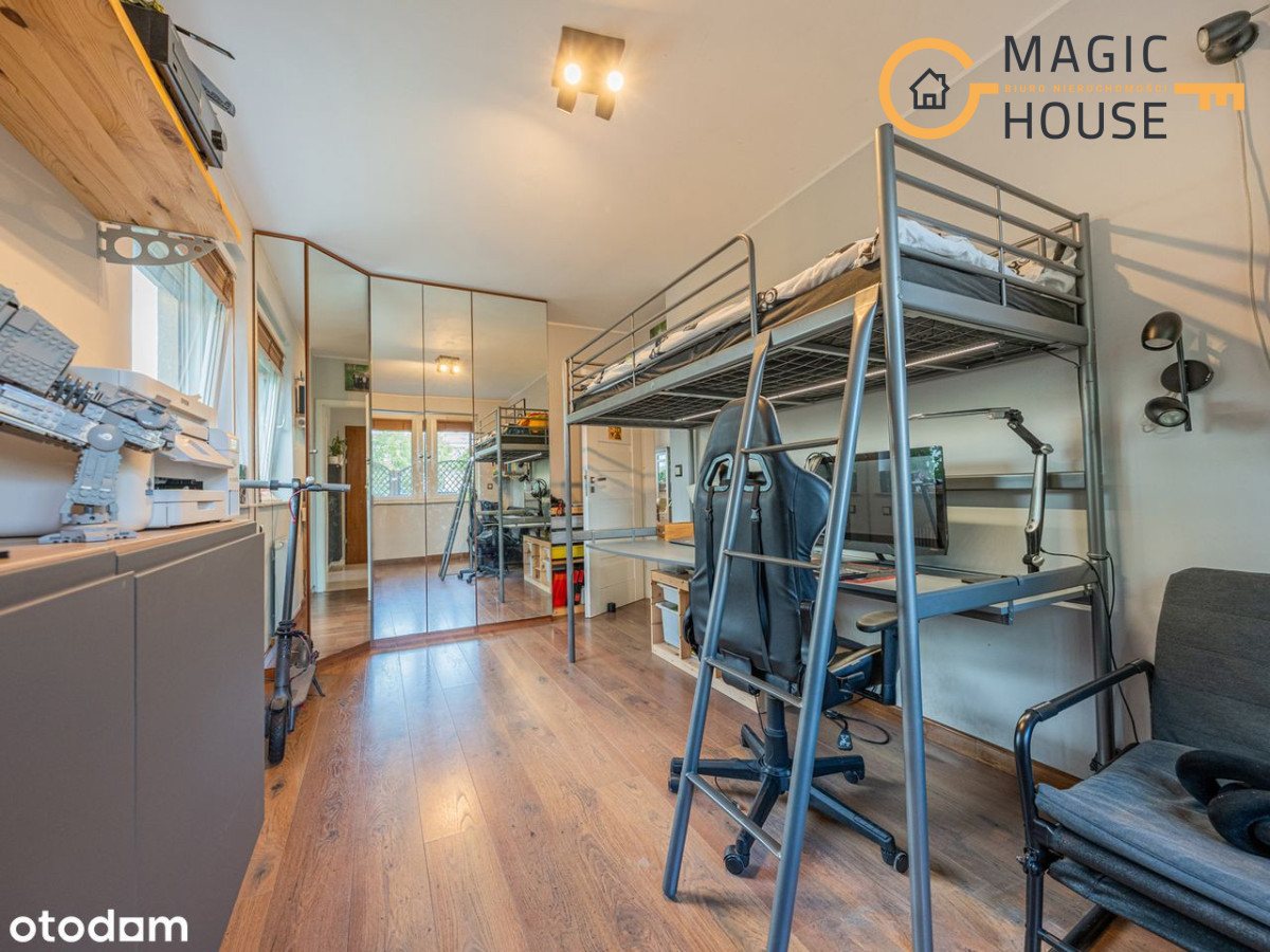 Atutem nieruchomości jest ogrodzony ogród o powierzchni 120 m², z drewnianym tarasem, otoczony roślinnością ozdobną i szpalerem iglaków. Drewniane ogrodzenie zapewnia prywatność i tworzy przytulną, kameralną atmosferę. To doskonałe miejsce na odpoczynek, spotkania z bliskimi czy spędzanie czasu na świeżym powietrzu.