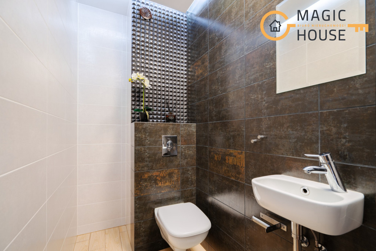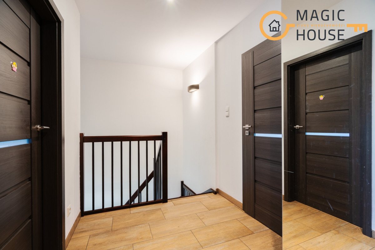 Ogromnym atutem jest dwustanowiskowy garaż (ok. 33 m²), który pomieści nie tylko dwa samochody, ale także rowery czy dodatkowe sprzęty.