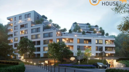 Nowoczesny budynek mieszkalny z 108 mieszkaniami, w tym lokali o różnej liczbie pokoi (od 1 do 5).