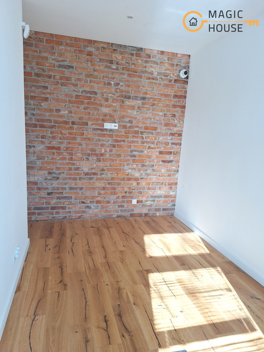 Wysokość pomieszczeń ok. 3,20 m zapewnia poczucie przestrzeni, a stylowe wykończenie (odsłonięta cegła, tynk) nadaje wnętrzu wyjątkowy charakter.