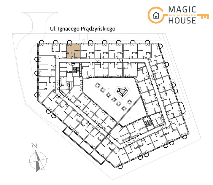 Wyjątkowa oferta dla inwestora – apartament typu studio o powierzchni 30,22 m² z balkonem (1,64 m²), położony na 1. piętrze prestiżowego budynku przy ul. Ignacego Prądzyńskiego