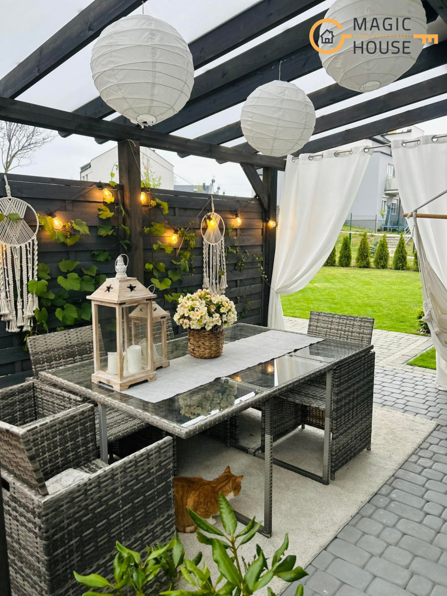 Niezwykłym atutem tej nieruchomości jest prywatny ogród o powierzchni 400 m², graniczący bezpośrednio ze stawem. To idealna przestrzeń na wypoczynek, zabawę z dziećmi czy letnie spotkania w gronie bliskich.-system automatycznego nawadniania, wydzielona strefa dla dzieci – plac zabaw, zieleń, cisza i pełna prywatność.