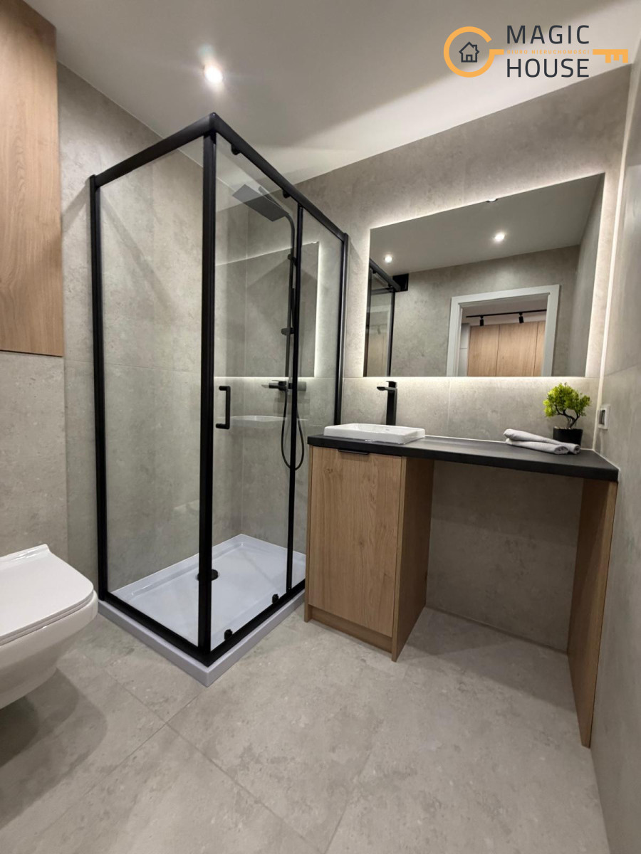 Mieszkanie przeszło generalny remont, podczas którego wymieniono wszystkie instalacje oraz wykończono wnętrze przy użyciu wysokiej jakości materiałów. Nowoczesna zabudowa kuchenna została wykonana na wymiar i wyposażona w niezbędny sprzęt AGD, co pozwala na natychmiastowe użytkowanie lokalu bez dodatkowych nakładów finansowych.