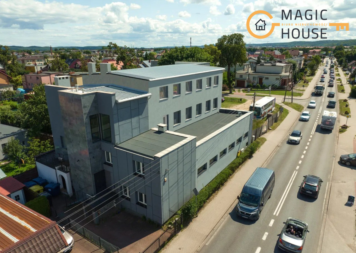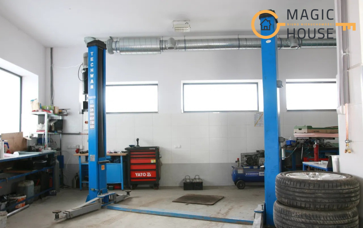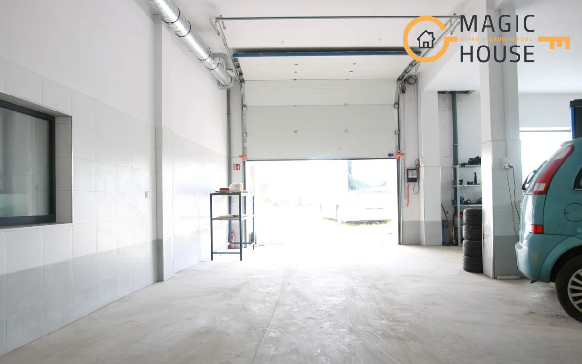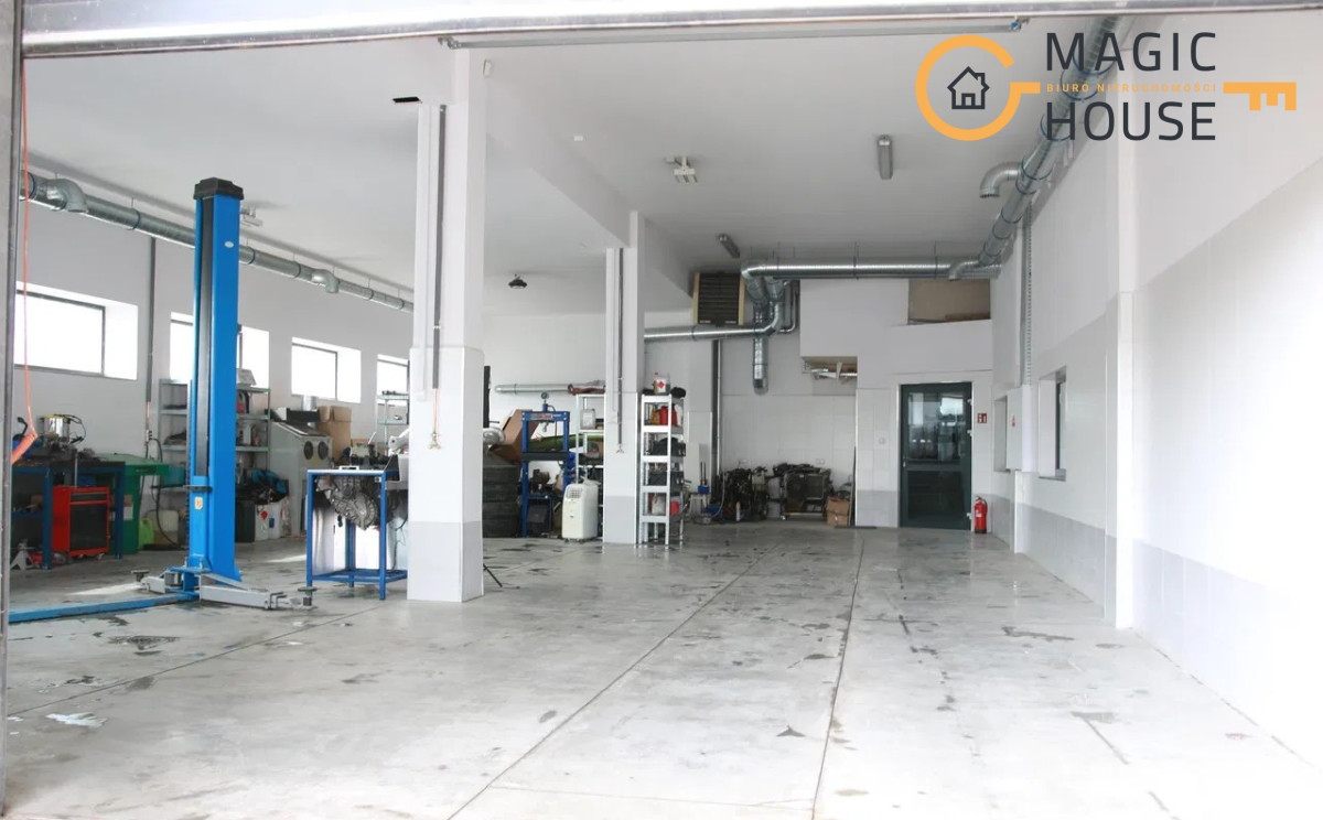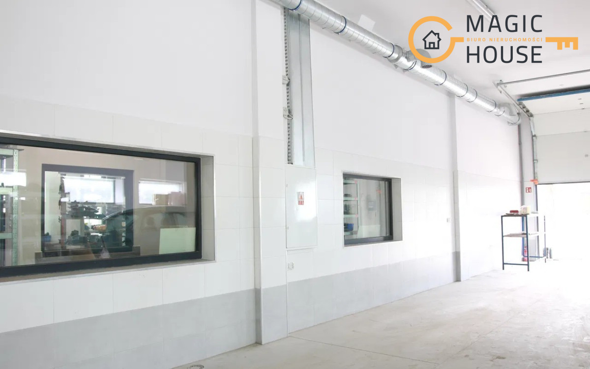 Przestronna hala z pełnym zapleczem warsztatowym i wydzieloną częścią biurową. Doskonała pod działalność usługową, produkcyjną, magazynową lub showroom.