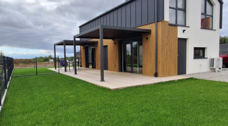 Każdy z domów ma powierzchnię 48 m², działkę od 165 do 300 m², prywatne miejsce postojowe oraz taras z zadaszeniem (pergola z regulowanym dachem).