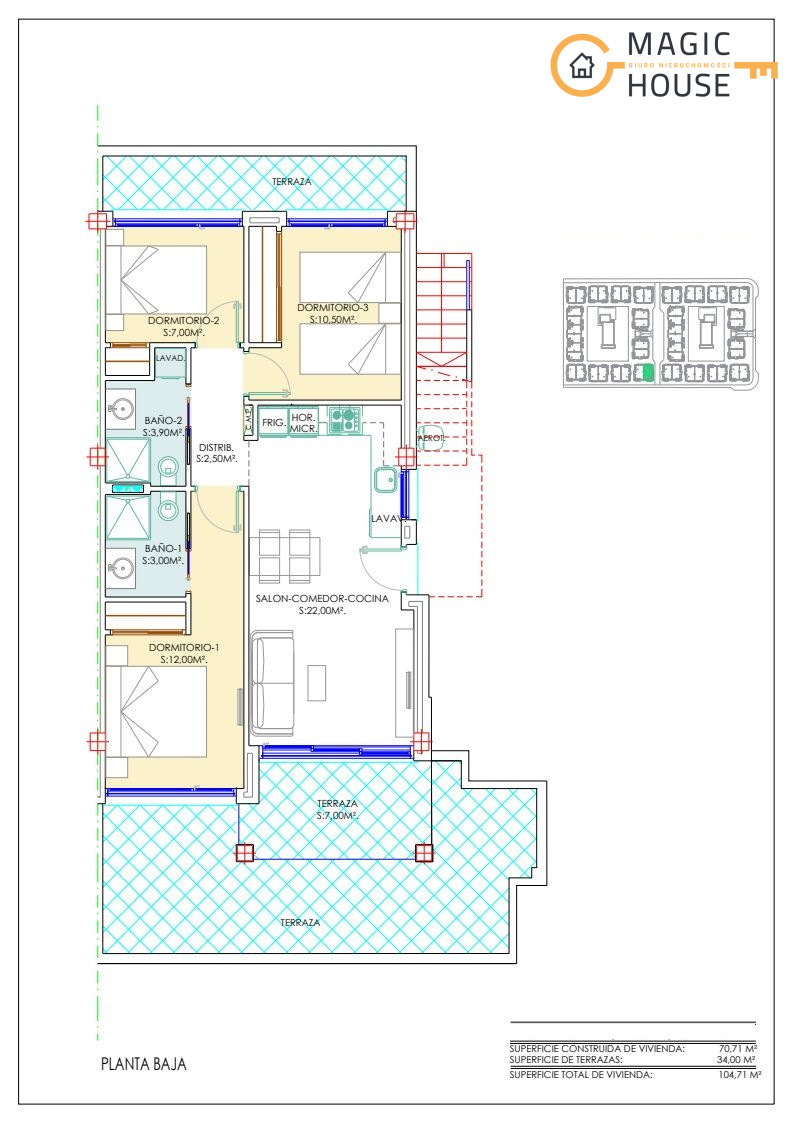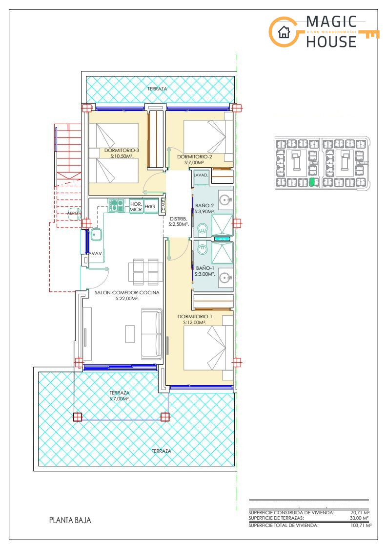 To zamknięte osiedle to oaza spokoju, położona w urokliwym Pilar de la Horadada, zaledwie 3,5 km od morza. Ciesz się komfortem nowoczesnego mieszkania z w pełni wyposażoną kuchnią, inteligentnymi rozwiązaniami i najwyższej jakości wykończeniem. Relaksuj się przy basenie, w prywatnym ogrodzie lub na słonecznym tarasie z kuchnią letnią.