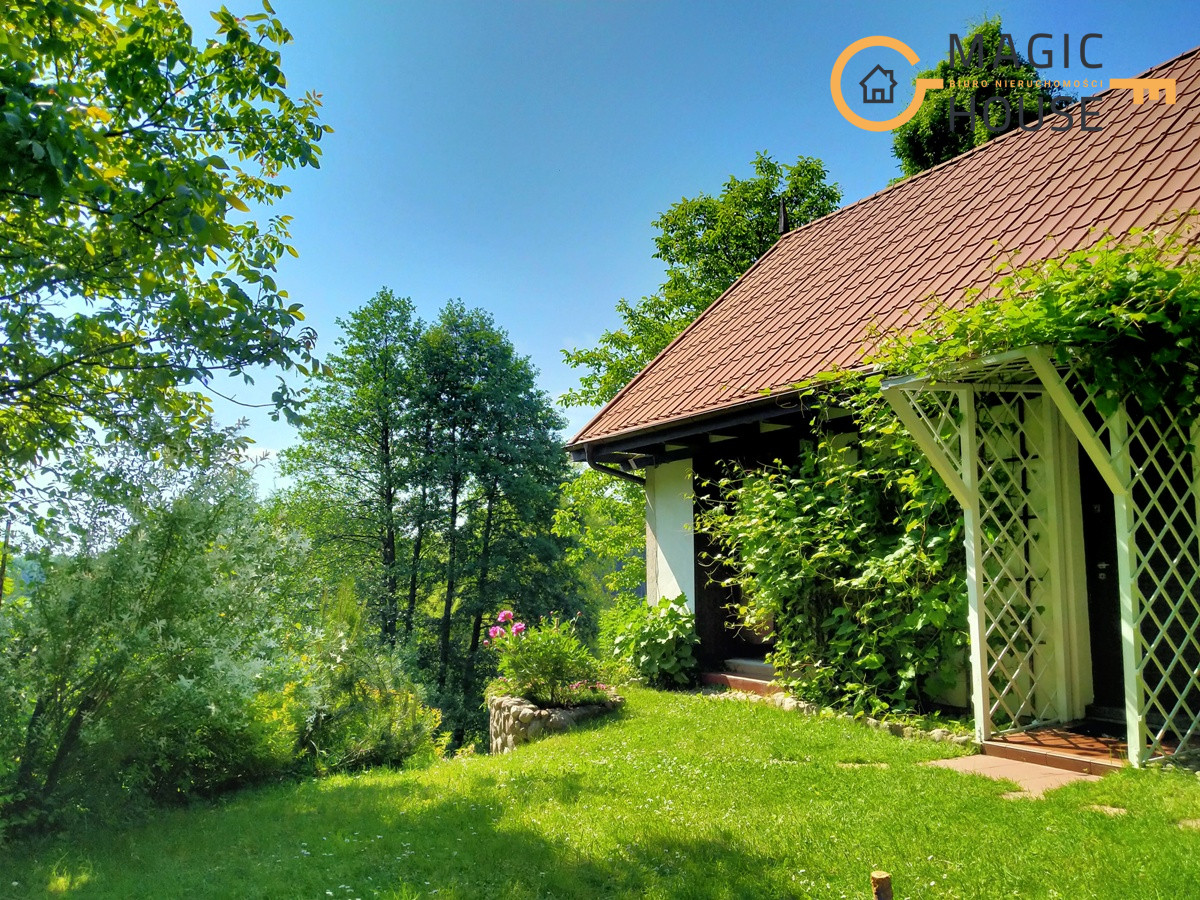 Dojazd drogą asfaltową. Przy domu są własne miejsca parkingowe dla gości. W bezpośrednim sąsiedztwie działki są tylko 2 inne domy. Wszystkie 3 domy mają podobną architekturę, co tworzy harmonijną enklawę na skraju zadrzewionego jaru.