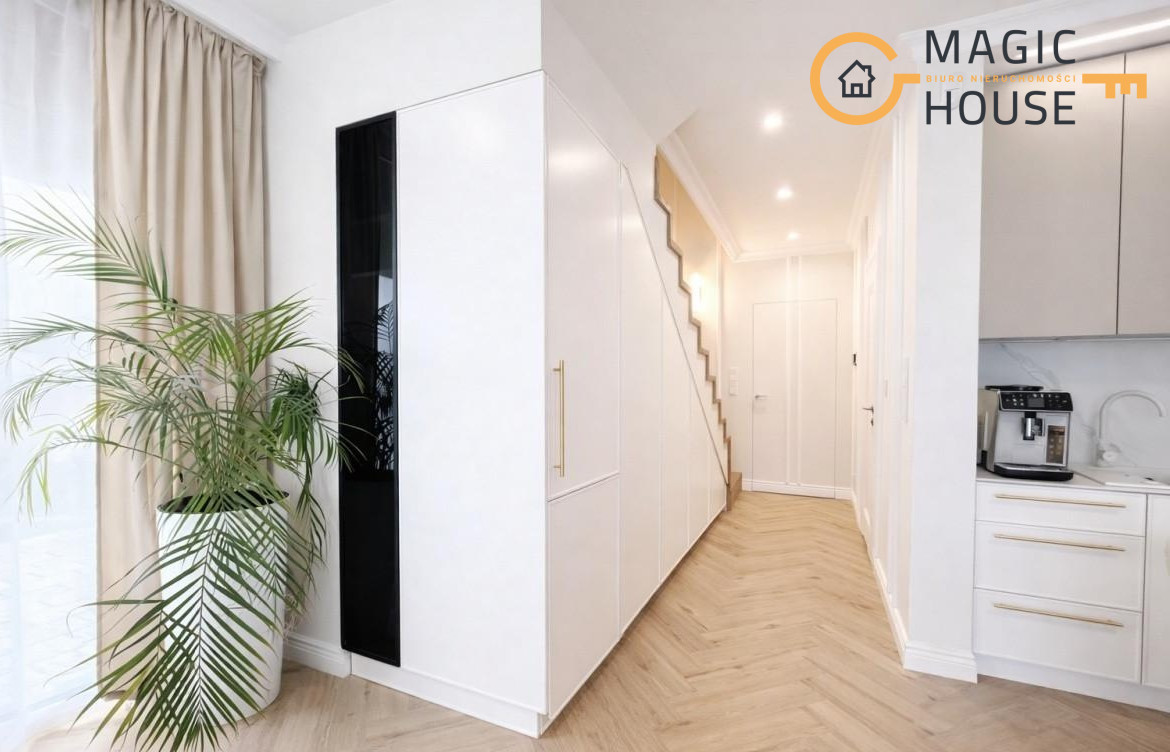 Dom łączy w sobie nowoczesność z elegancją inspirowaną stylem Hampton oraz loftowym wykończeniem. Przemyślany układ, wysokiej jakości materiały oraz duże przeszklenia sprawiają, że wnętrze jest jasne, przestronne i komfortowe w codziennym użytkowaniu.