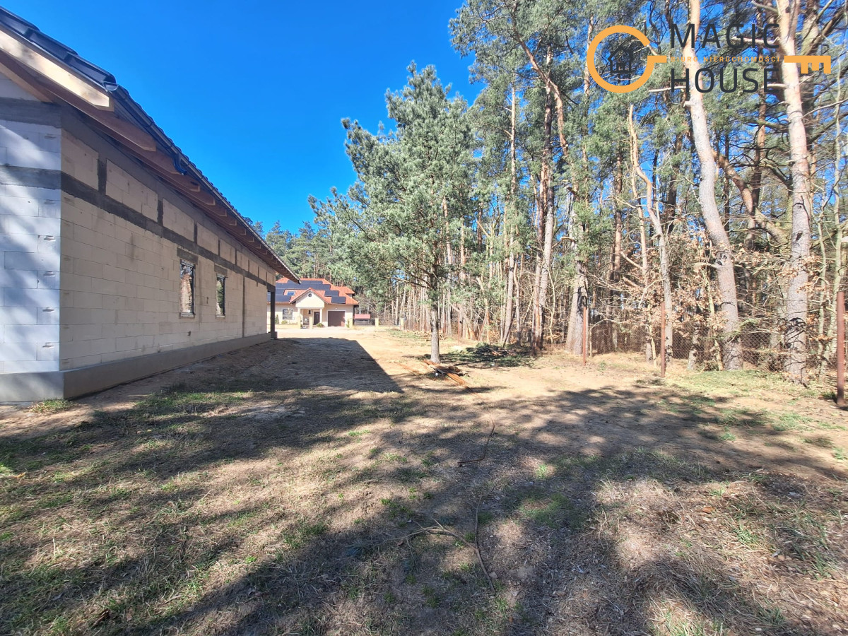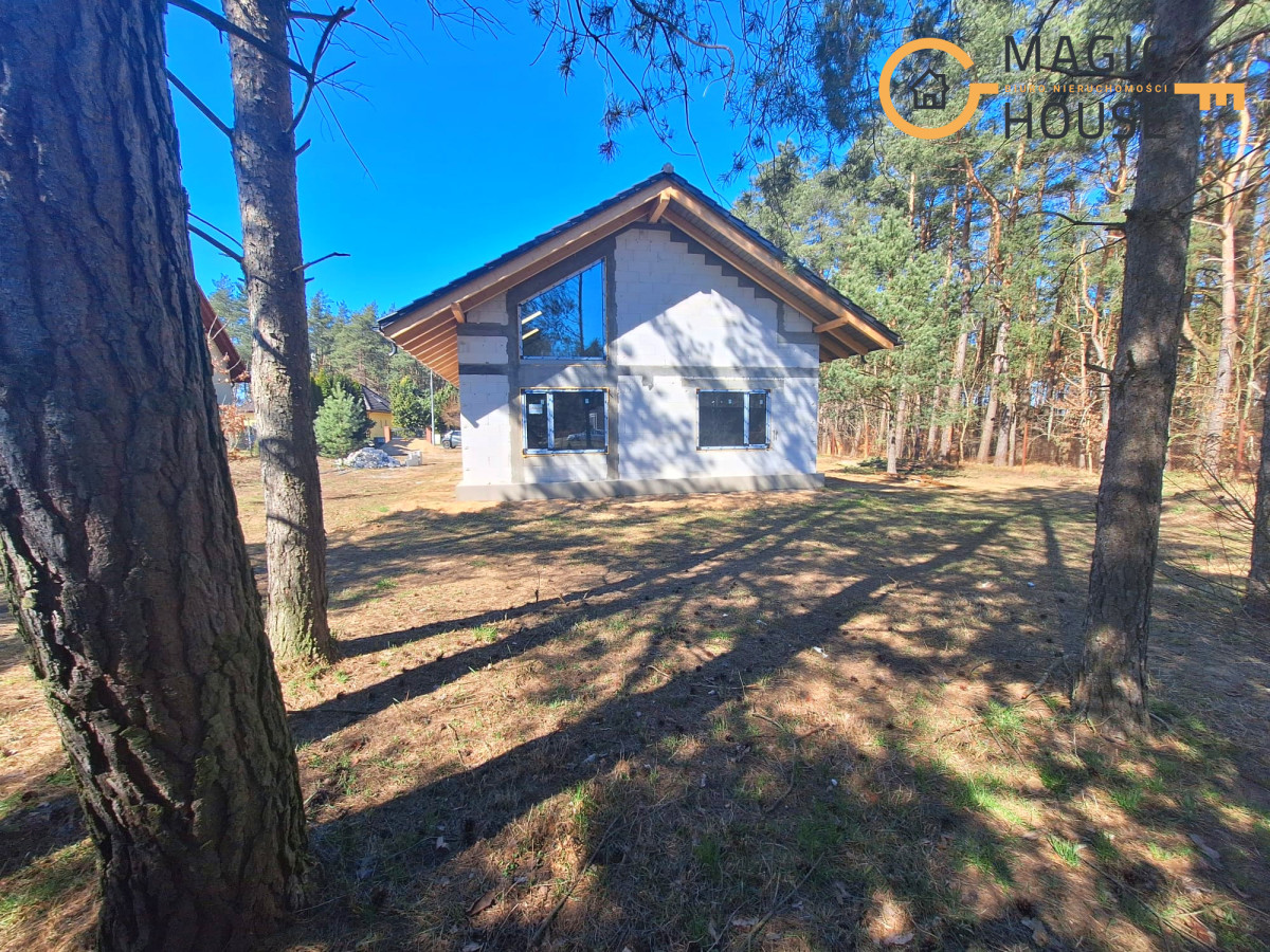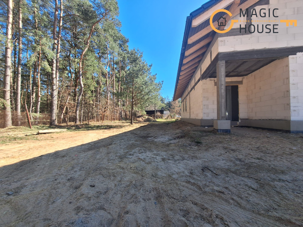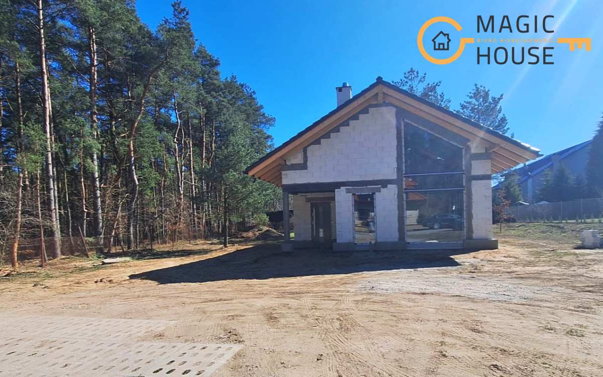 Centralnym punktem domu jest przestronny salon połączony z jadalnią oraz kuchnią wyposażoną w wyspę i bark śniadaniowy. Duże, przesuwne przeszklenia umożliwiają płynne przejście na taras, tworząc spójną przestrzeń do wypoczynku. W części prywatnej znajdują się komfortowe sypialnie, w tym pokój rodziców z garderobą oraz dwa ustawne pokoje dla dzieci.