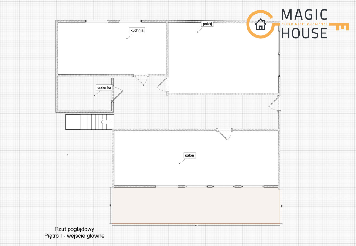 I PIĘTRO: główny salon, pokój i kuchnia.