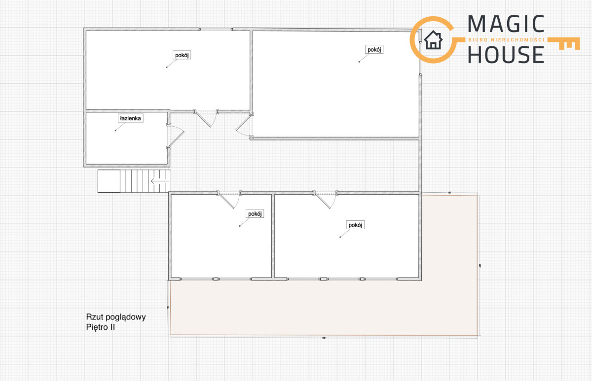 II PIĘTRO: cztery pokoje oraz łazienka, z możliwością adaptacji jednego pokoju na kuchnię.