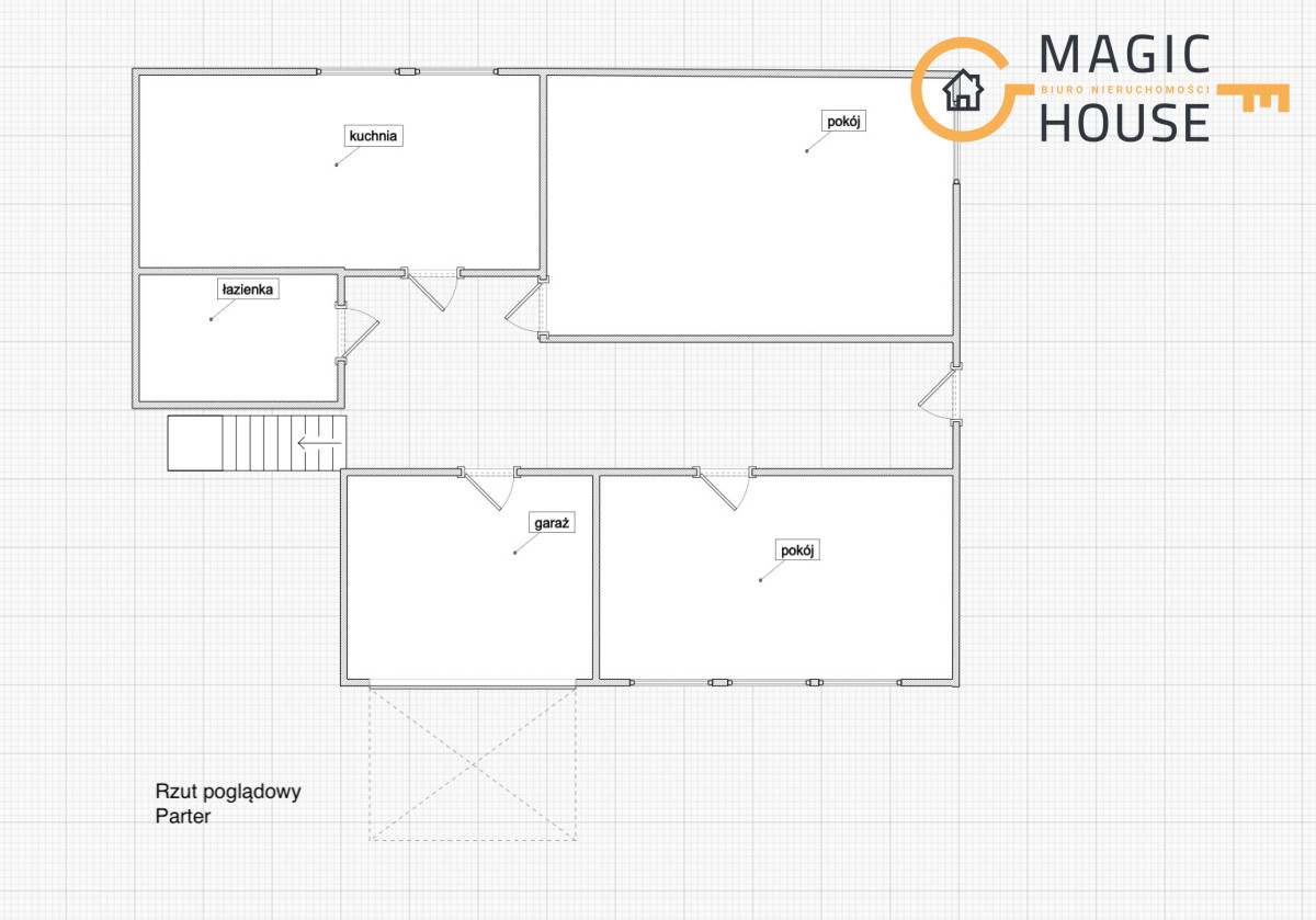 PARTER –  z garażem, dodatkowym salonem i kuchnią – idealne na wynajem lub dla gości. Obniżona wysokość.