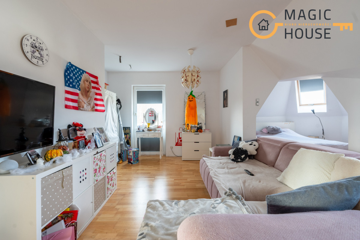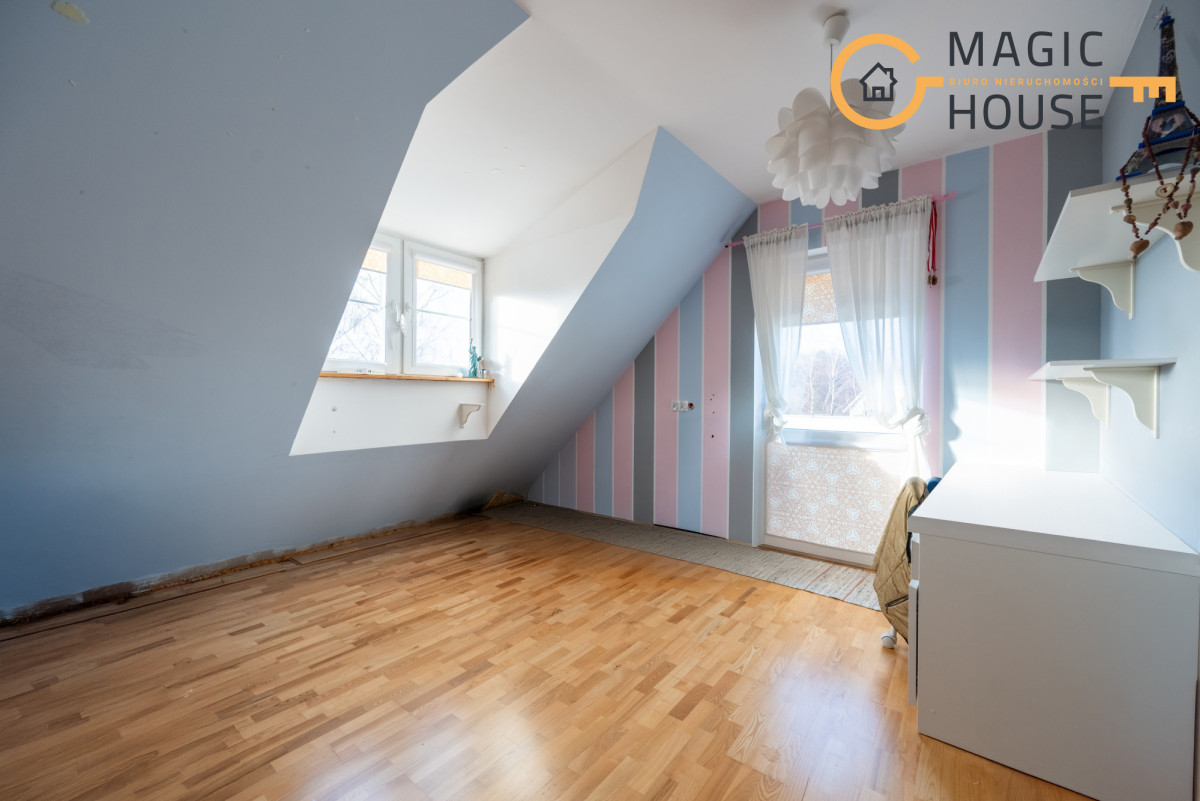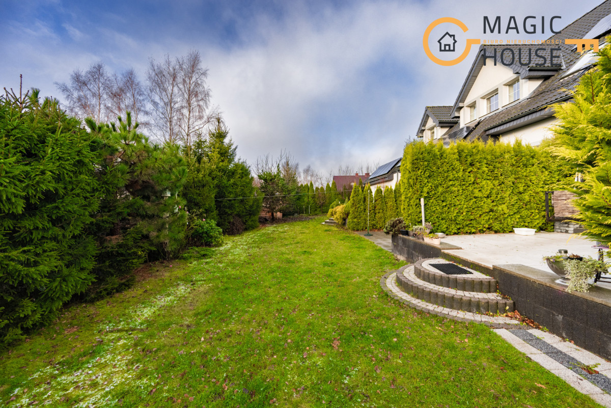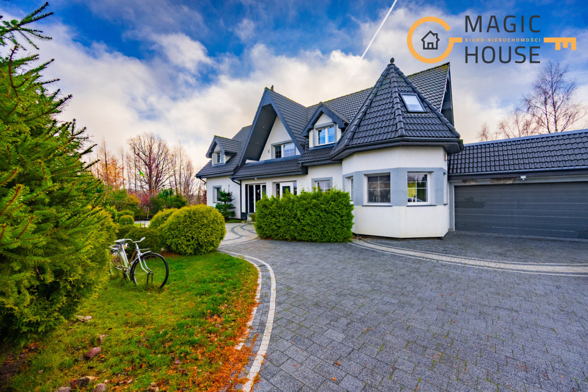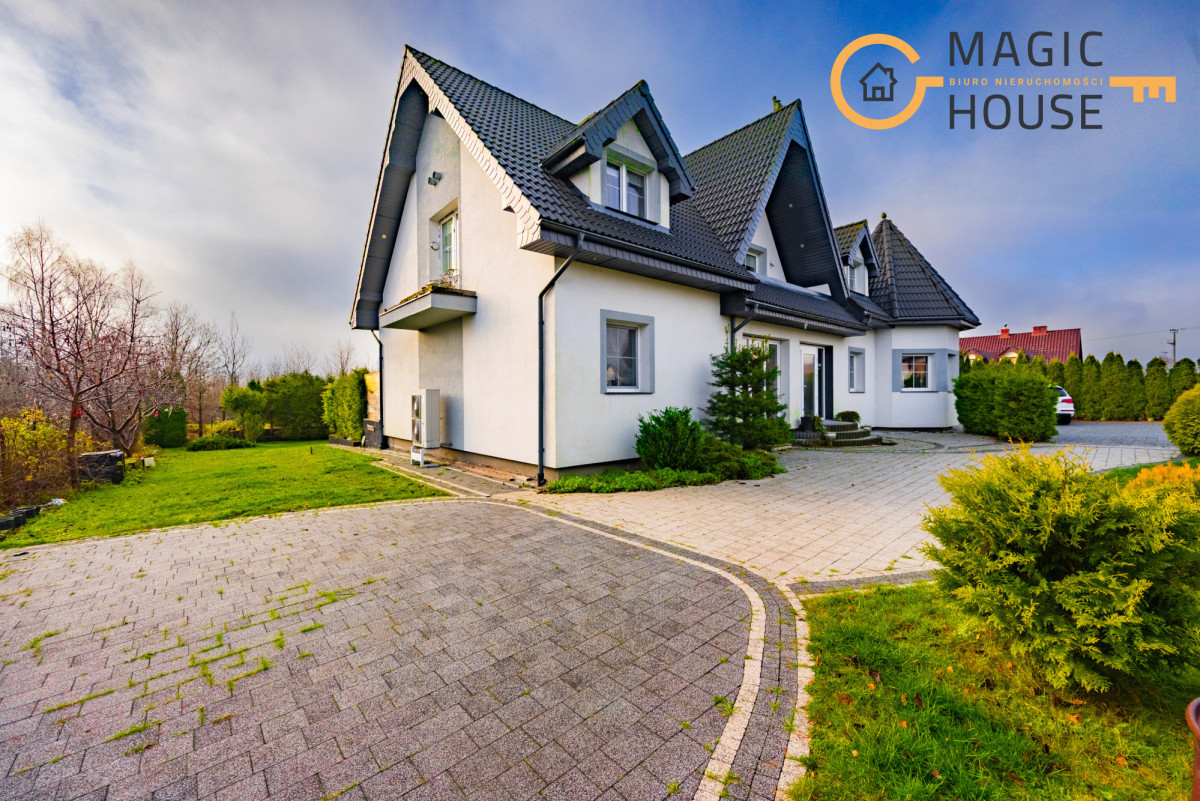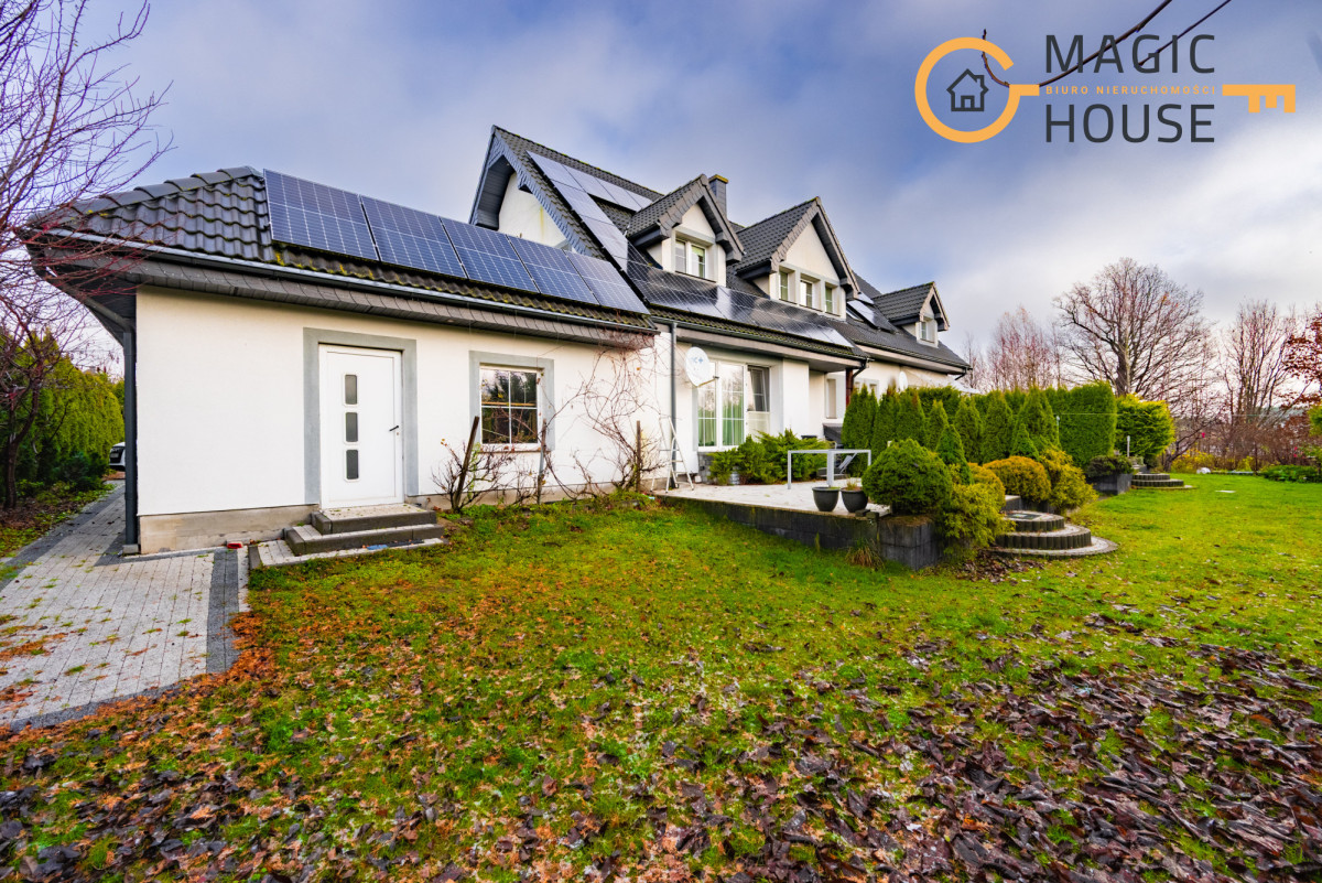 Biuro MagicHouse prezentuje dom wolnostojący o łącznej powierzchni ok. 330 m², podzielony funkcjonalnie na dwa niezależne lokale mieszkalne, każdy z własnym wejściem. Budynek został starannie wykończony, wyposażony w instalację fotowoltaiczną, pompę ciepła oraz ogrzewanie podłogowe na całej powierzchni, co przekłada się na wyjątkowo niskie koszty użytkowania. Roczne opłaty za energię — obejmujące także ogrzewanie — wynoszą ok. 3500 zł dla całego domu.