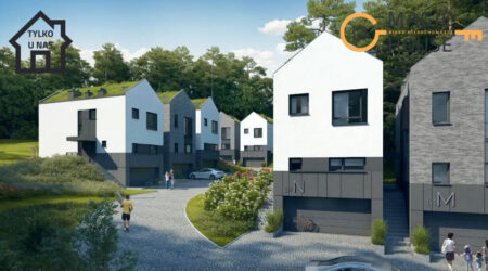 Każdy dom w Leśnej Dolinie charakteryzuje się nowoczesną, minimalistyczną architekturą z zielonymi dachami, które nie tylko podkreślają estetykę, ale także wspierają ekologię poprzez retencję wody deszczowej i poprawę izolacji termicznej.