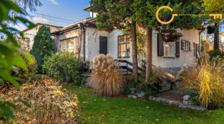 Dom z 1933 roku, o powierzchni 250 m2 zanurzony jest w pięknym, zadbanym ogrodzie z oczkiem wodnym i okazałym drzewostanem. Na posesji garaż wolnostojący, wiata parkingowa oraz dodatkowe naziemne miejsce postojowe. Solidna konstrukcja z cegły, elewacja z cykliny białej, na dachu tytancynk.
