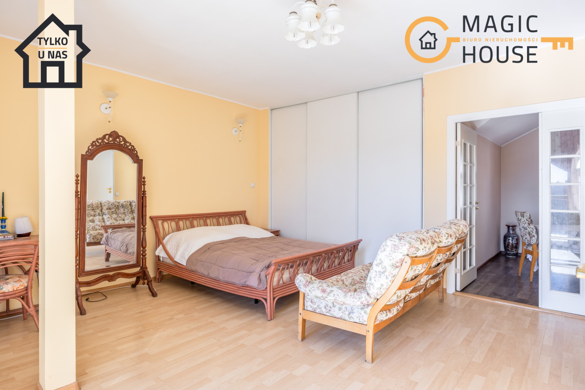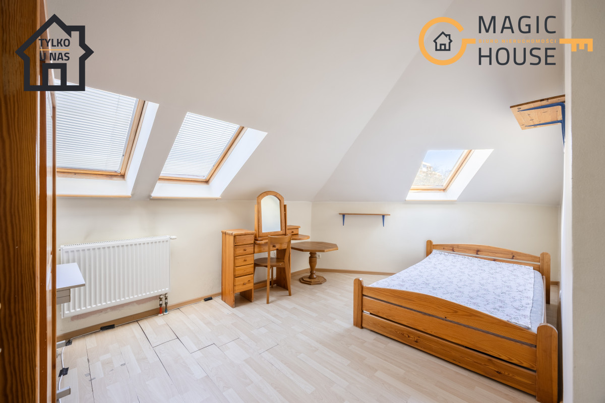 Dom składa się z dużej ilości pomieszczeń, natomiast 2/3 domu (niski parter i parter) zostały przekształcone pod działalność gospodarczą (oświatową).