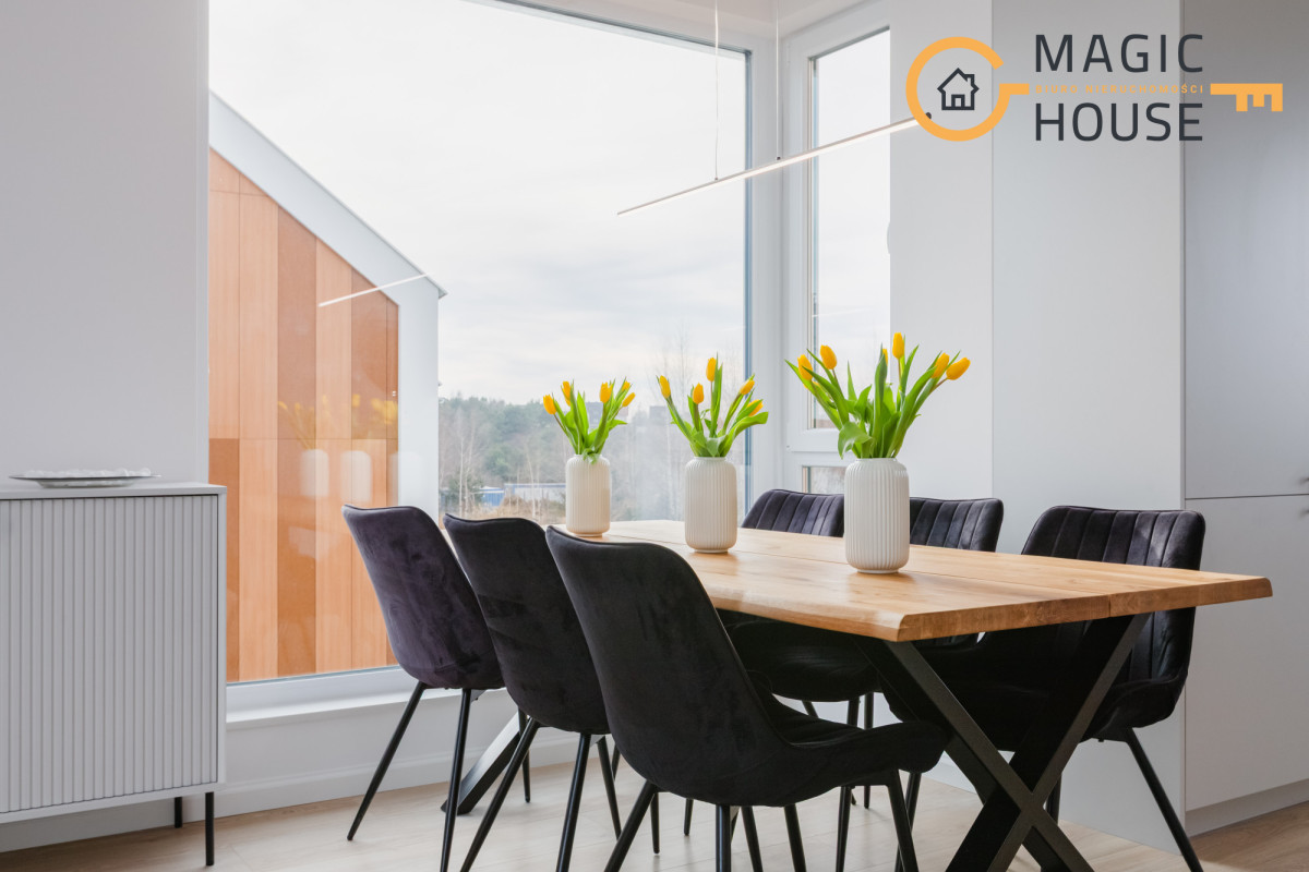 Wnętrze zostało zaprojektowane przez architekta w nowoczesnym stylu, z najwyższą dbałością o detale. Apartament jest w pełni wykończony w wysokim standardzie i wyposażony w nowe meble, biokominek oraz sprzęt AGD (piekarnik, płyta indukcyjna, lodówka z zamrażarką, okap, pralka Samsung — pełna gwarancja). Zabudowa kuchenna wykonana na wymiar przez renomowaną firmę stolarską. Apartament gotowy do zamieszkania od zaraz.