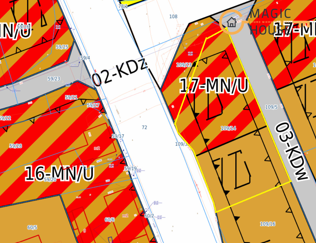 • Przeznaczenie: większa część mieszkaniowo-usługowa, pozostała część mieszkaniowa