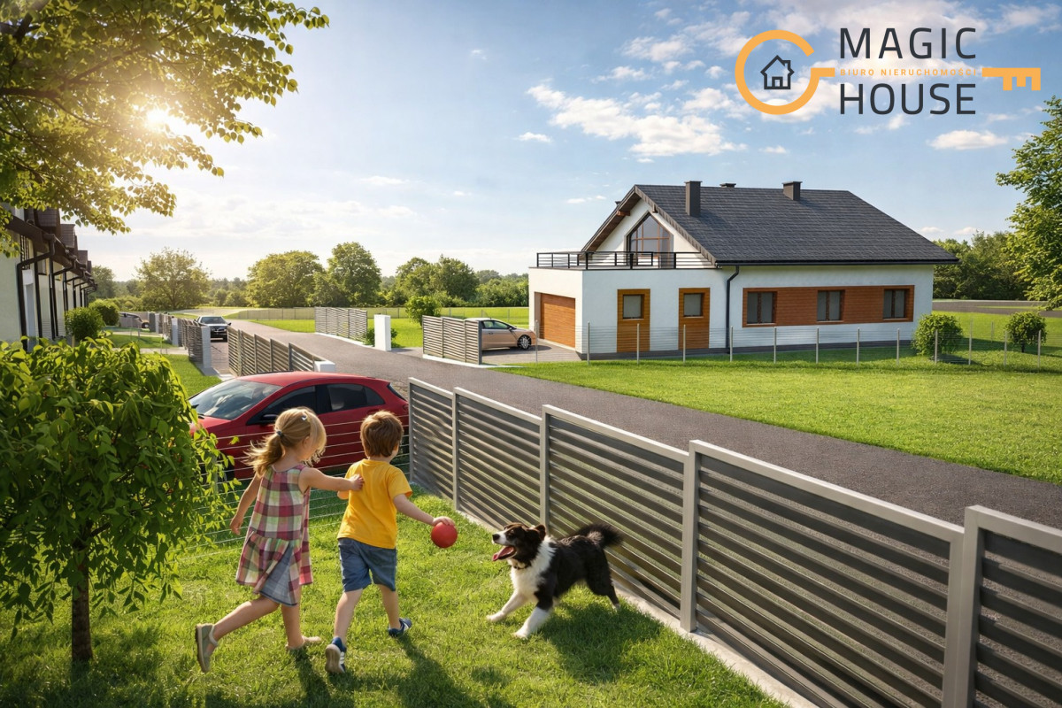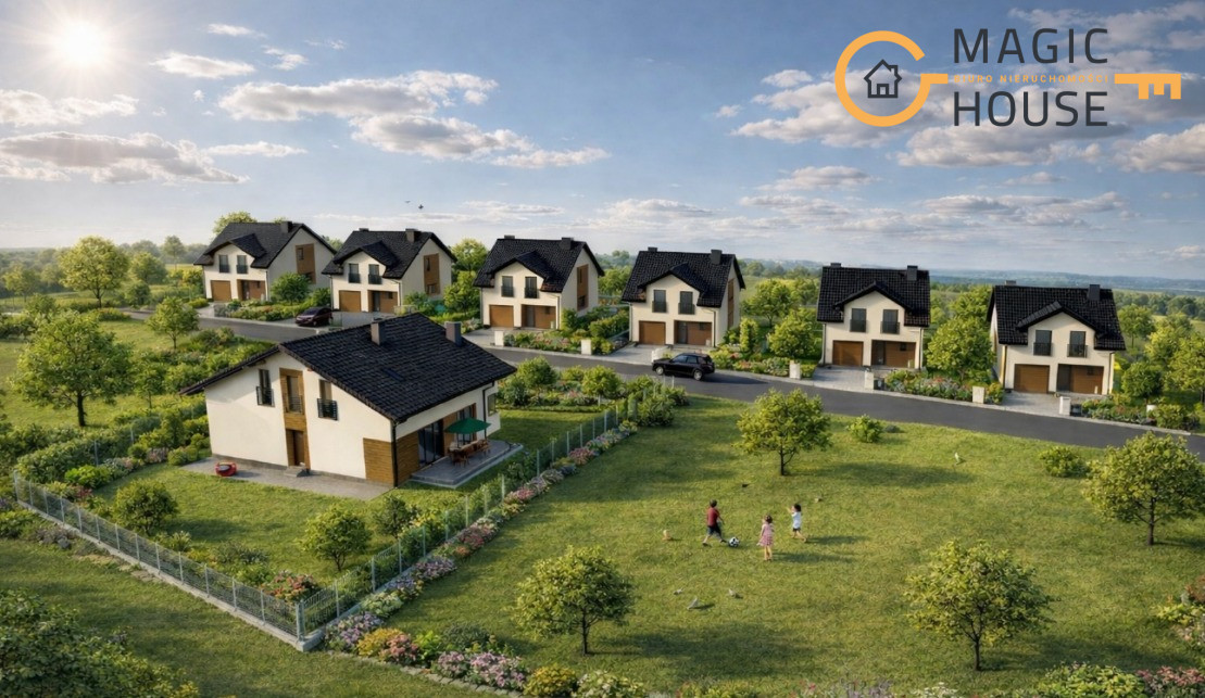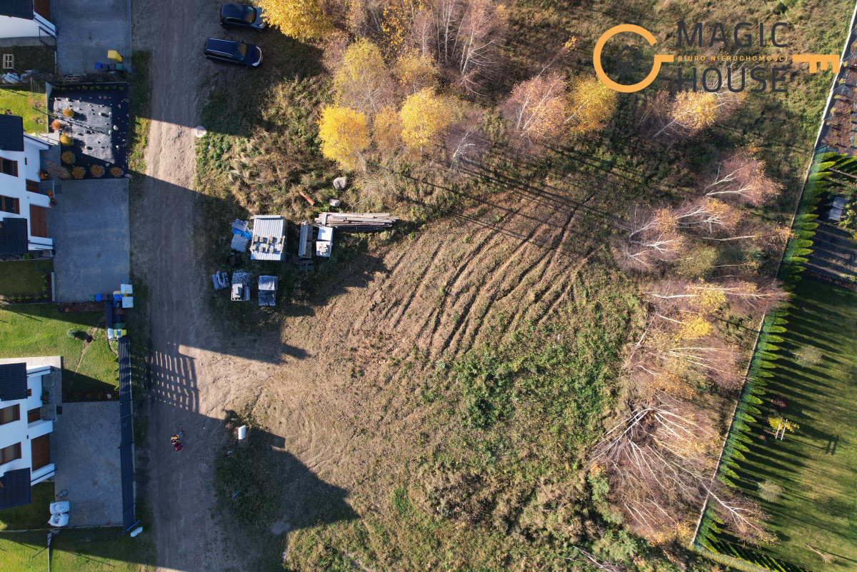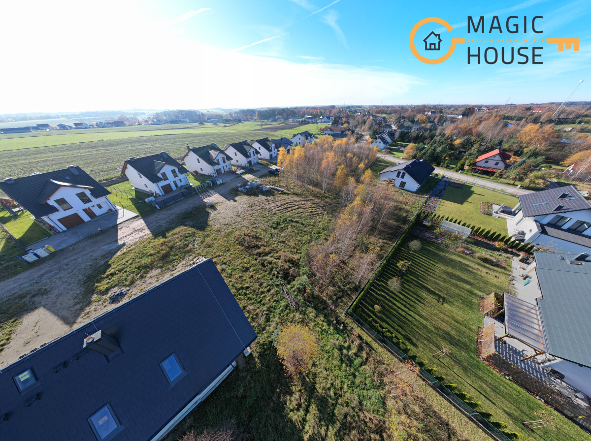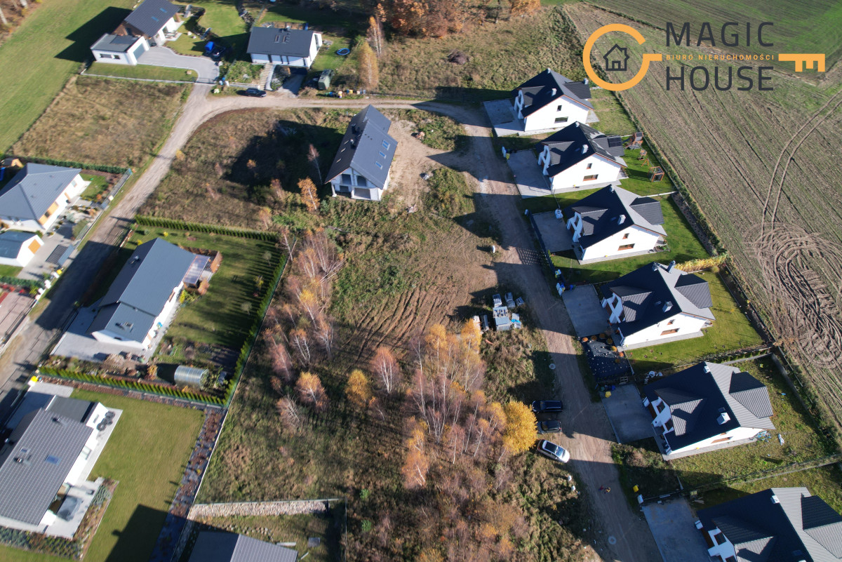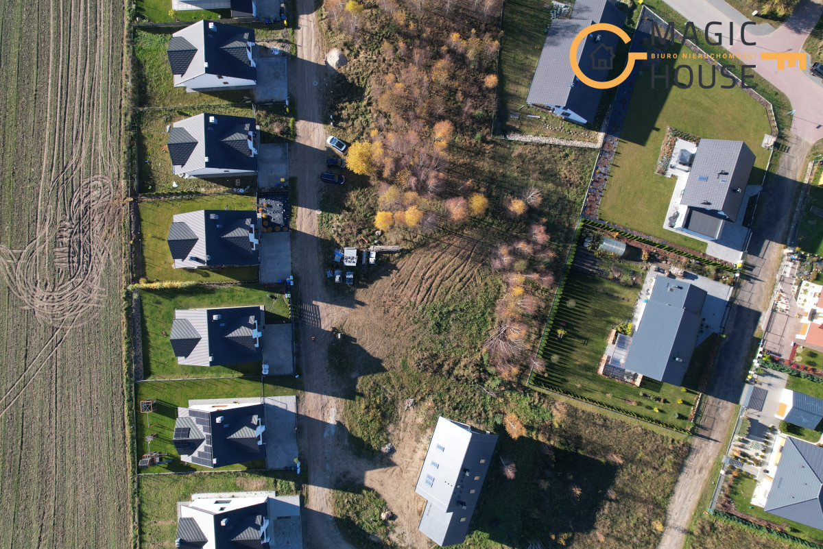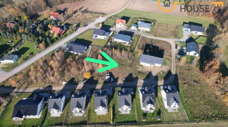 Działka o powierzchni 937 m2 znajduje się na nowym, spokojnym osiedlu domków jednorodzinnych.