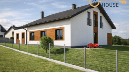 Projekt domu jednorodzinnego z możliwością wyodrębnienia dwóch niezależnych mieszkań (parter i piętro) z osobnymi wejściami.