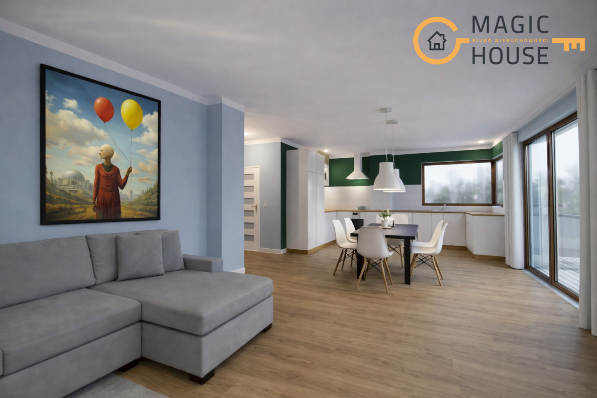 W bliskiej odległości pełne zaplecze handlowo – usługowe (nowa szkoła podstawowa, przedszkole, sklepy, restauracje, kościół, paczkomat.