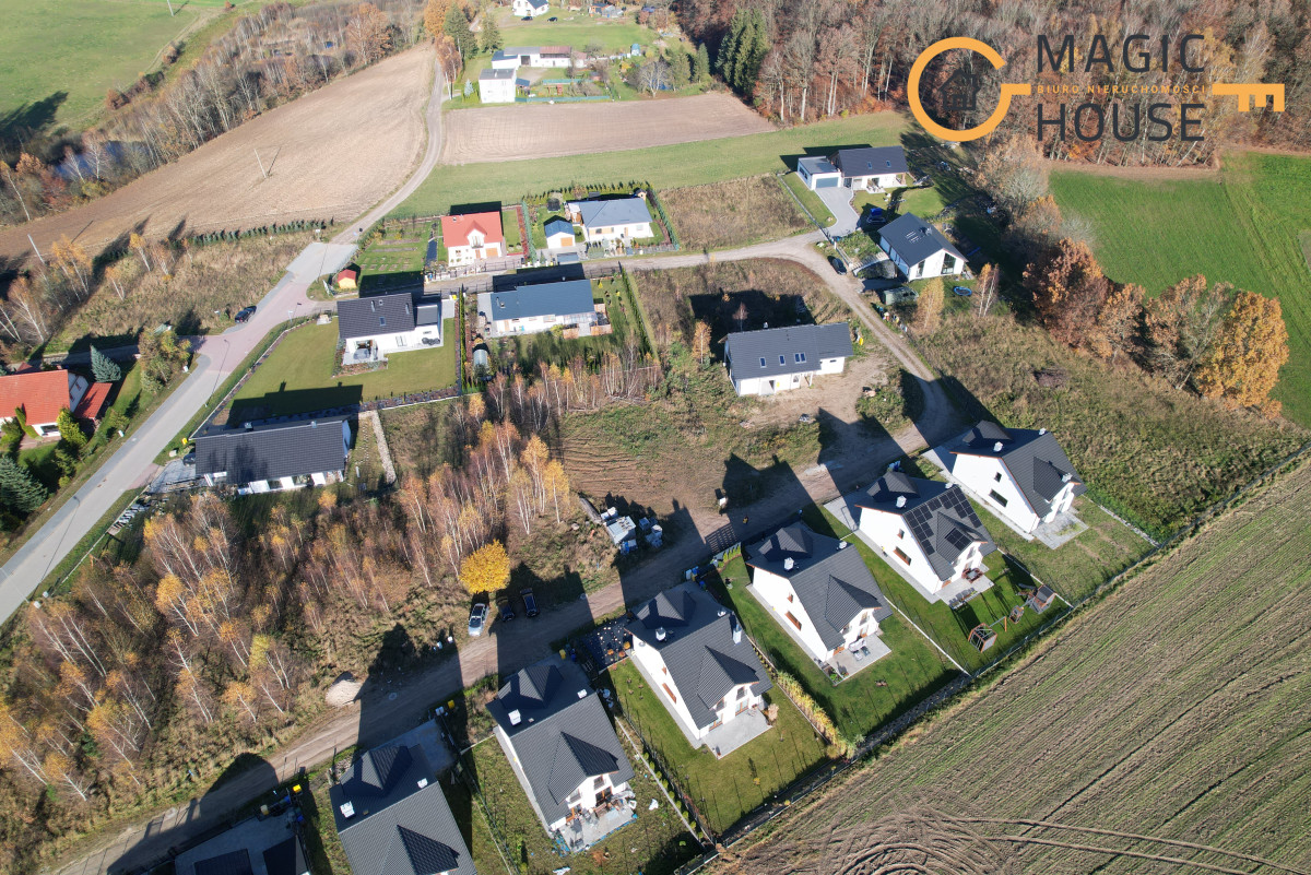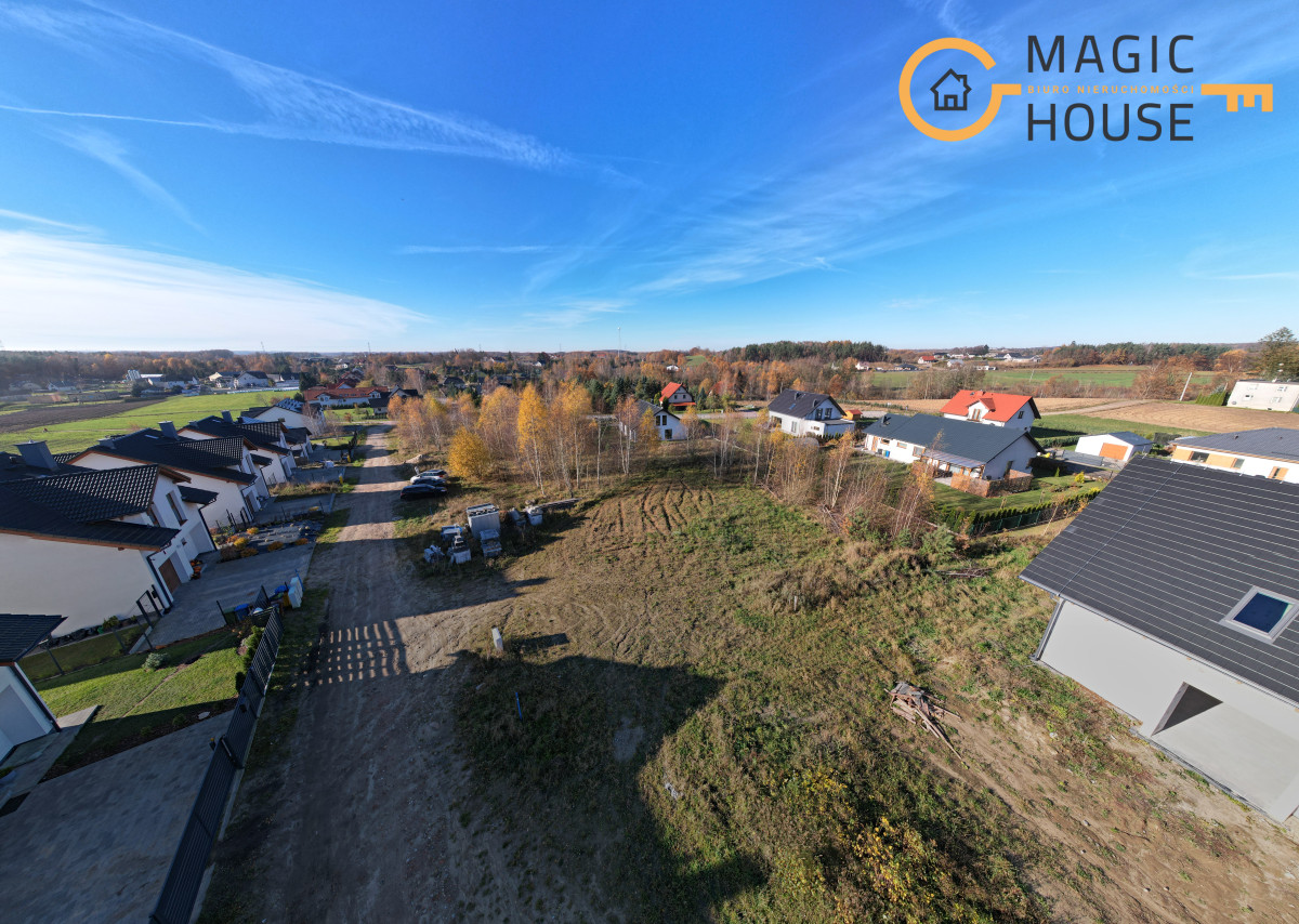Działka o powierzchni 937 m2 znajduje się na nowym, spokojnym osiedlu domków jednorodzinnych.