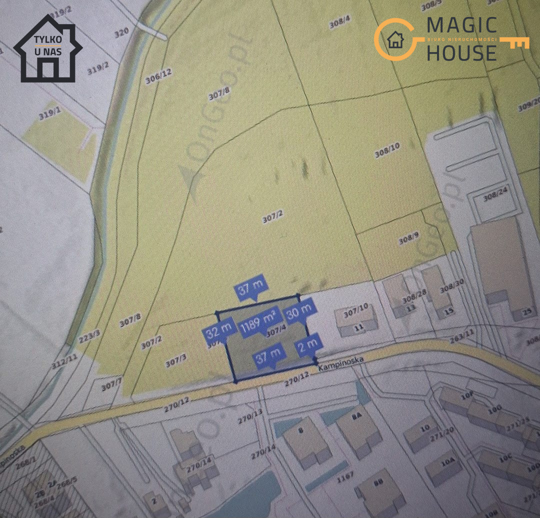 ORAZ 307/4 (ok. 1185 m2), WIĘC ISTNIEJE MOŻLIWOŚĆ ZAKUPU DWÓCH NIERUCHOMOŚCI RAZEM, BĄDŹ KAŻDEJ  DZIAŁKI ODDZIELNIE.
