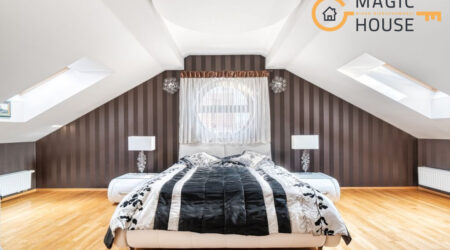 Przemyślany układ pomieszczeń – przestronny salon, jadalnia z aneksem kuchennym, dwie komfortowe sypialnie, stylowy pokój wypoczynkowy, funkcjonalny pokój gospodarczy oraz dwie eleganckie łazienki.
