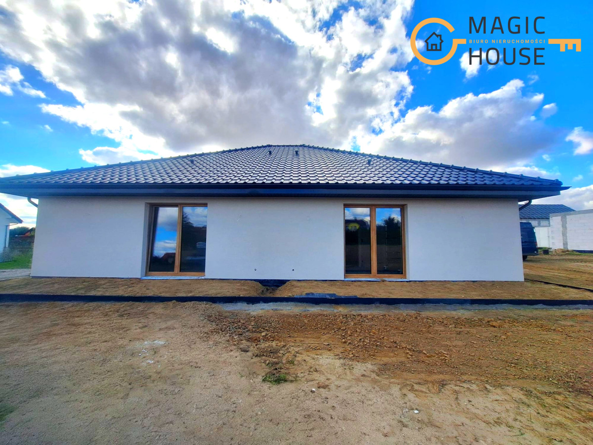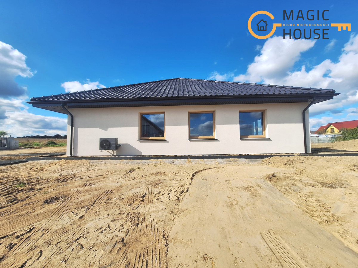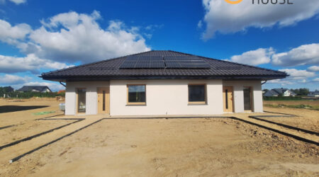 Nowoczesny, energooszczędny dom parterowy w zabudowie bliźniaczej z dużym ogrodem.
