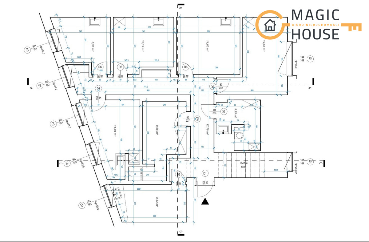 • Obecny układ: 6 gabinetów, toaleta, pomieszczenie gospodarcze