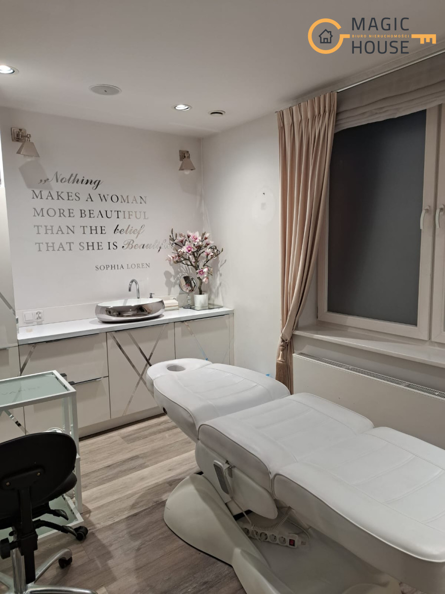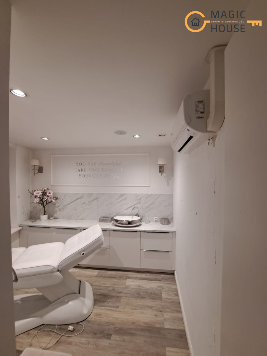 • Możliwość własnej aranżacji i nowego podziału przestrzeni – aktualny wystrój pozostawiony po salonie kosmetycznym