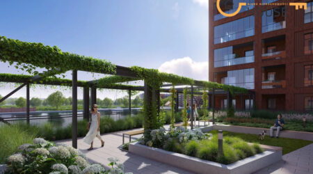 Kompleks obejmuje budynki o eleganckiej formie, z dużymi przeszkleniami i balkonami, które gwarantują dostęp naturalnego światła i widok na panoramę miasta. Mieszkania zostały zaprojektowane z myślą o komforcie mieszkańców – od kawalerek po przestronne apartamenty z tarasami.