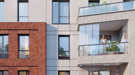 Kompleks obejmuje budynki o eleganckiej formie, z dużymi przeszkleniami i balkonami, które gwarantują dostęp naturalnego światła i widok na panoramę miasta. Mieszkania zostały zaprojektowane z myślą o komforcie mieszkańców – od kawalerek po przestronne apartamenty z tarasami.