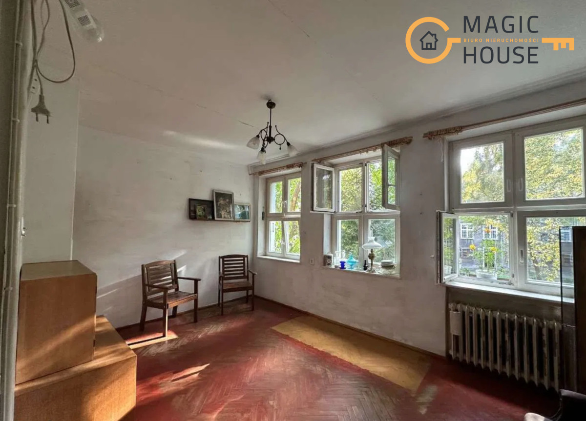 Oryginalna drewniana podłoga w formie wąskiej klepki została zachowana i może zostać odświeżona, podkreślając charakter kamienicy.