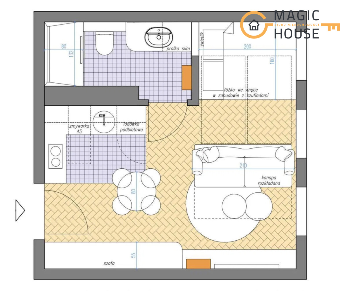 Załączony rzut nieruchomości to nowa koncepcja układu po inwentaryzacji.Cała przestrzeń została wg niego totalnie przeprojektowana do nowego układu, dzięki któremu mieszkanie może komfortowo pomieścić cztery osoby. Wnętrze zaprojektowano z myślą o maksymalnej funkcjonalności i ponadczasowej estetyce -prostota, naturalne materiały i detal na wysokim poziomie.