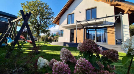 Cena obejmuje dom wykończony, działkę 800 m² oraz w pełni przygotowaną część usługową z osobnym wejściem.