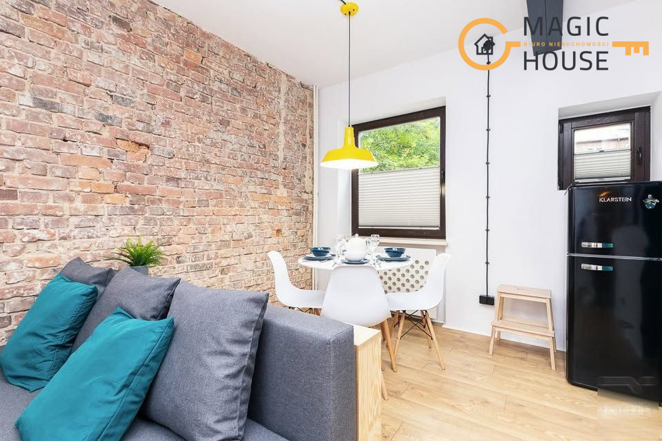 Malownicza ściana z autentycznej cegły i odrestaurowane elementy drewniane dodają niepowtarzalnego charakteru.